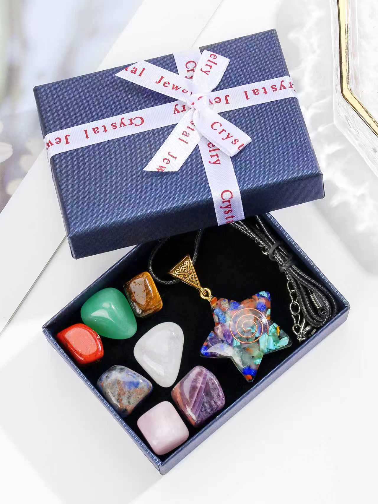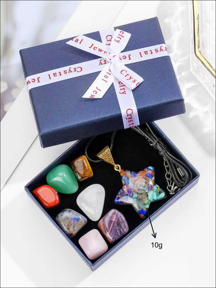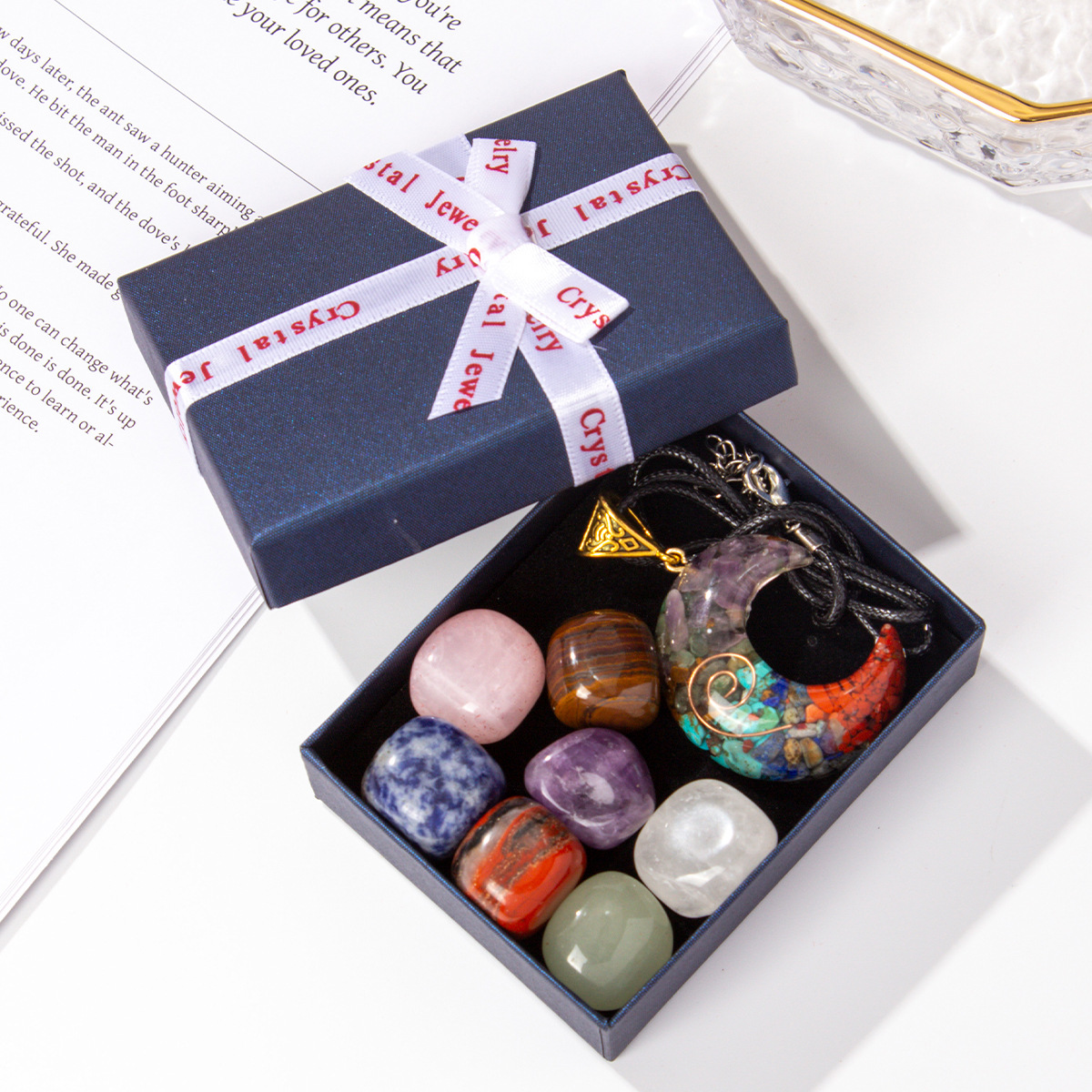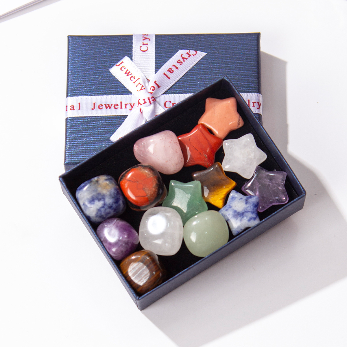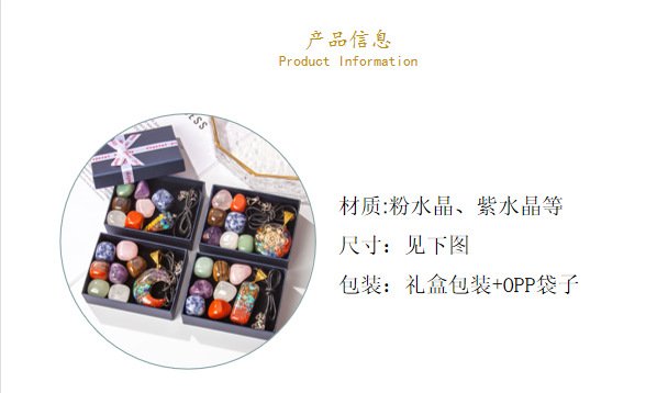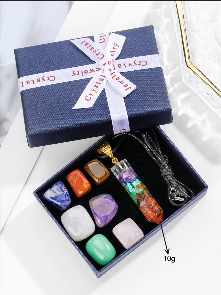 跨境爆款天然水晶礼盒套盒不规则七彩石滚石套装矿石标本摆件批发