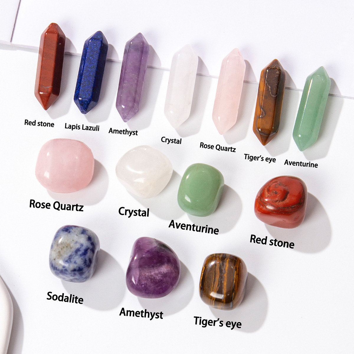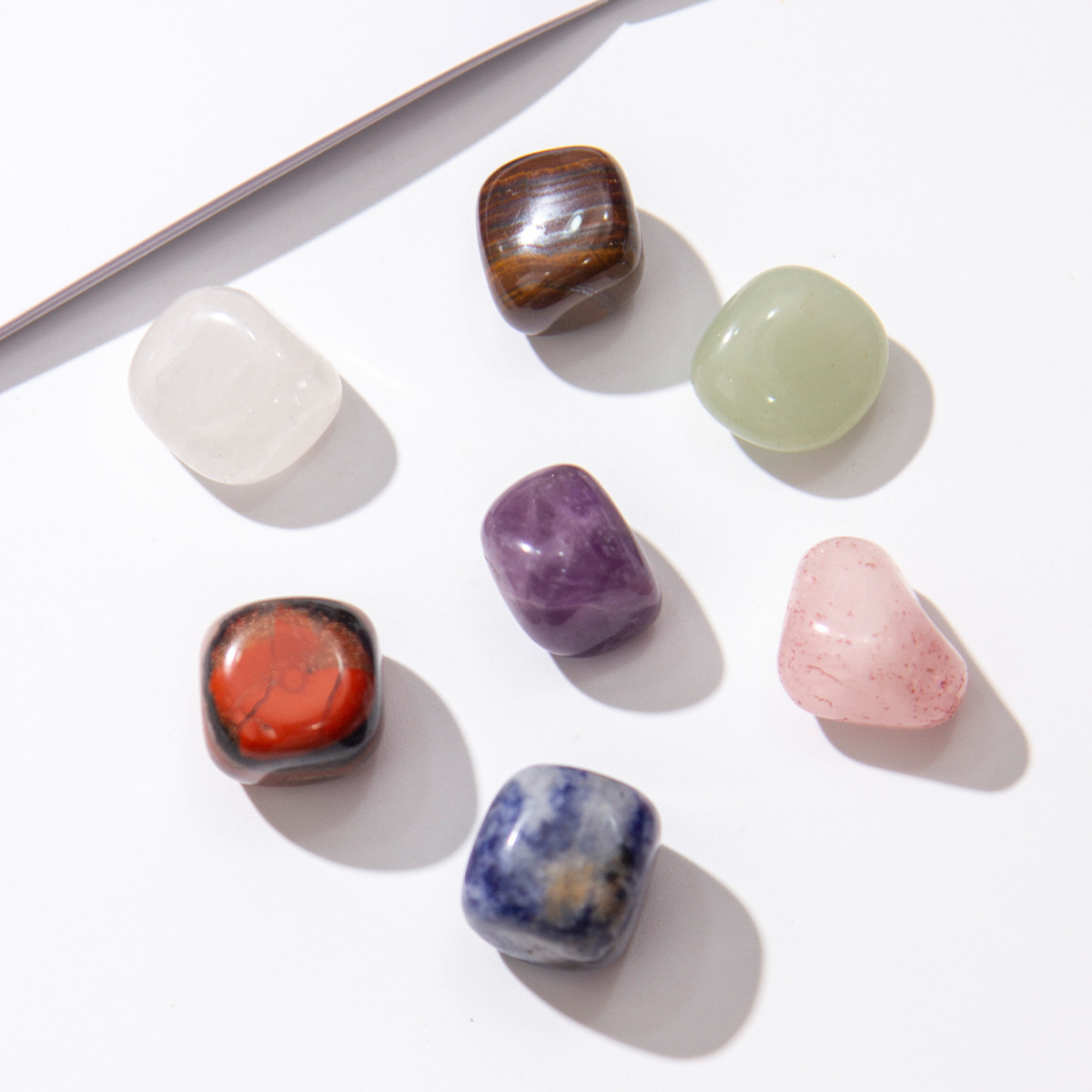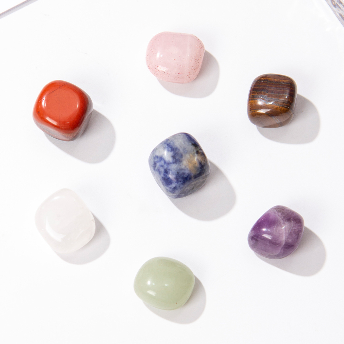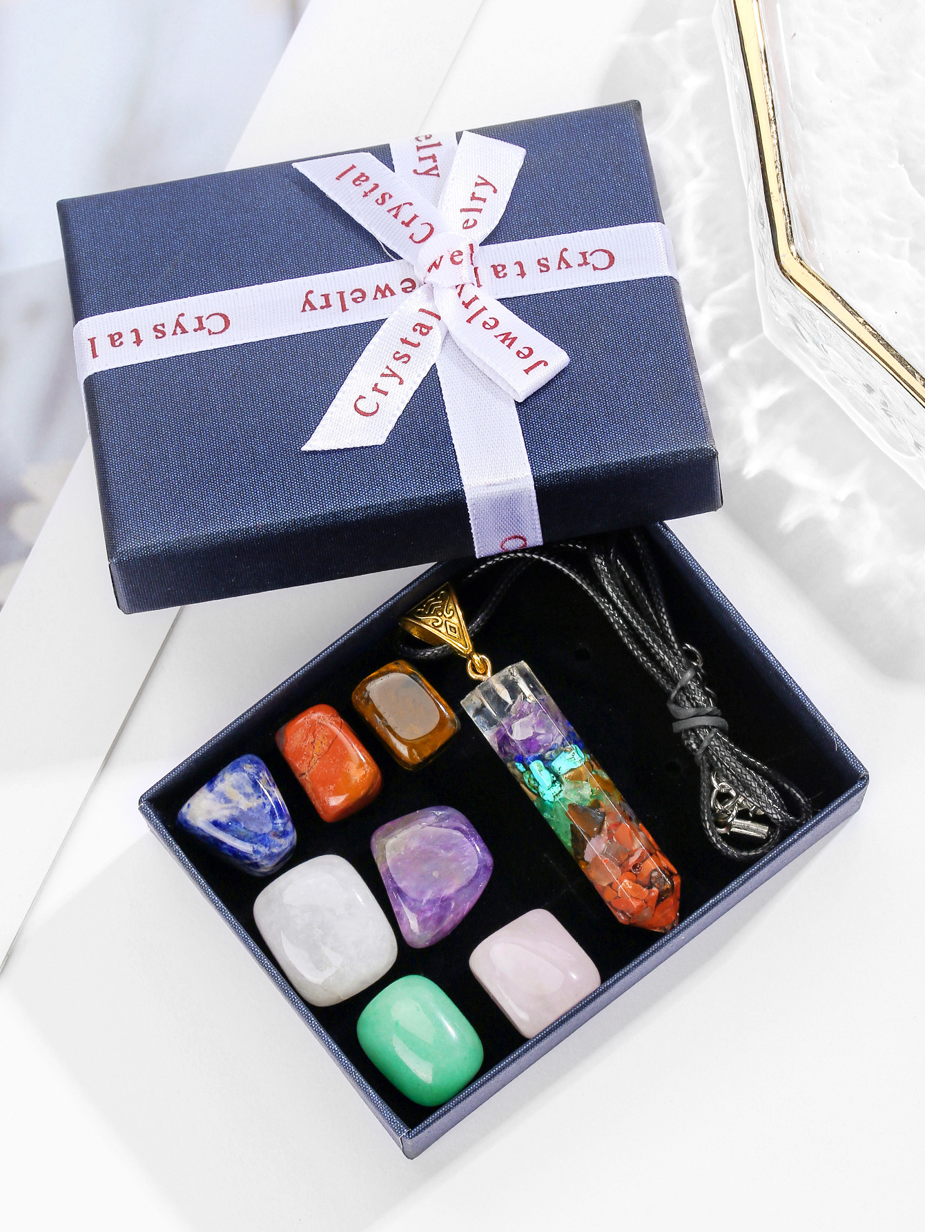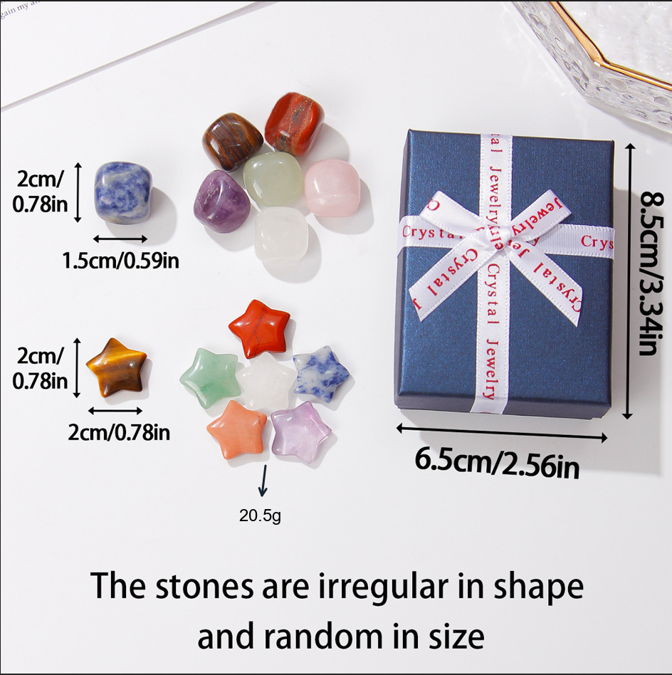 跨境爆款天然水晶礼盒套盒不规则七彩石滚石套装矿石标本摆件批发