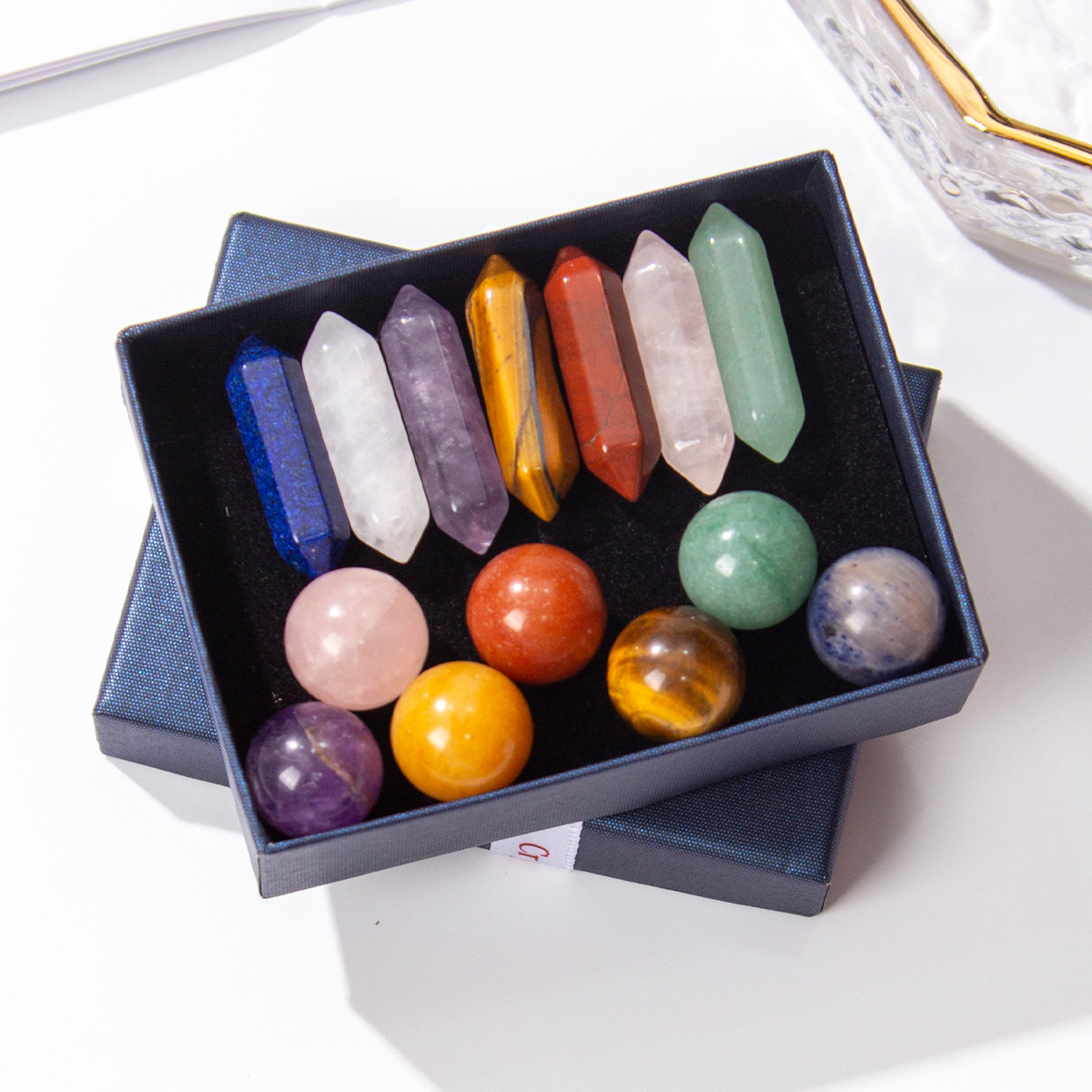 晶典宝石七彩シリーズ水晶原石双尖六角柱礼箱クロスボーダー水晶柱セット卸売り