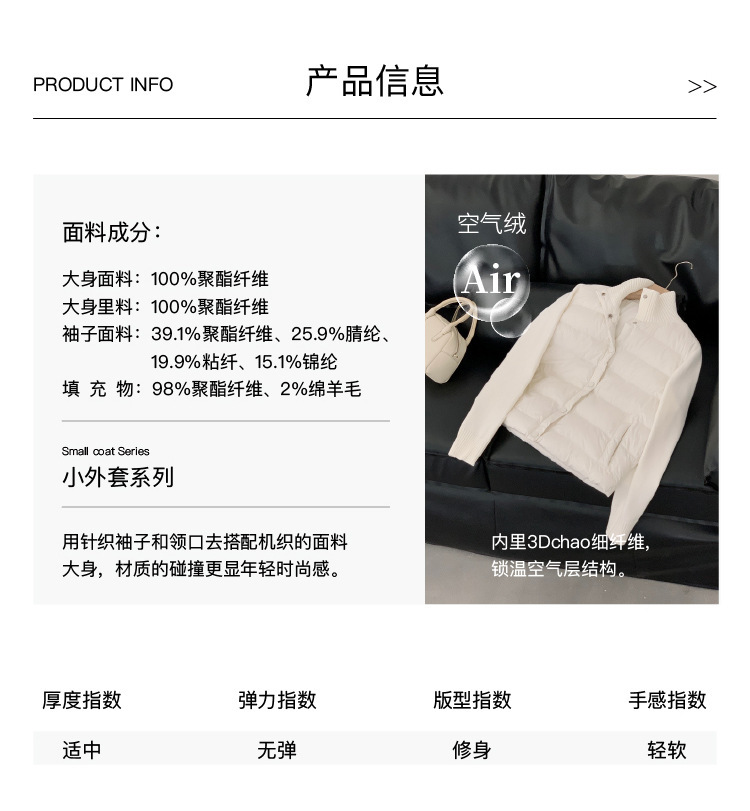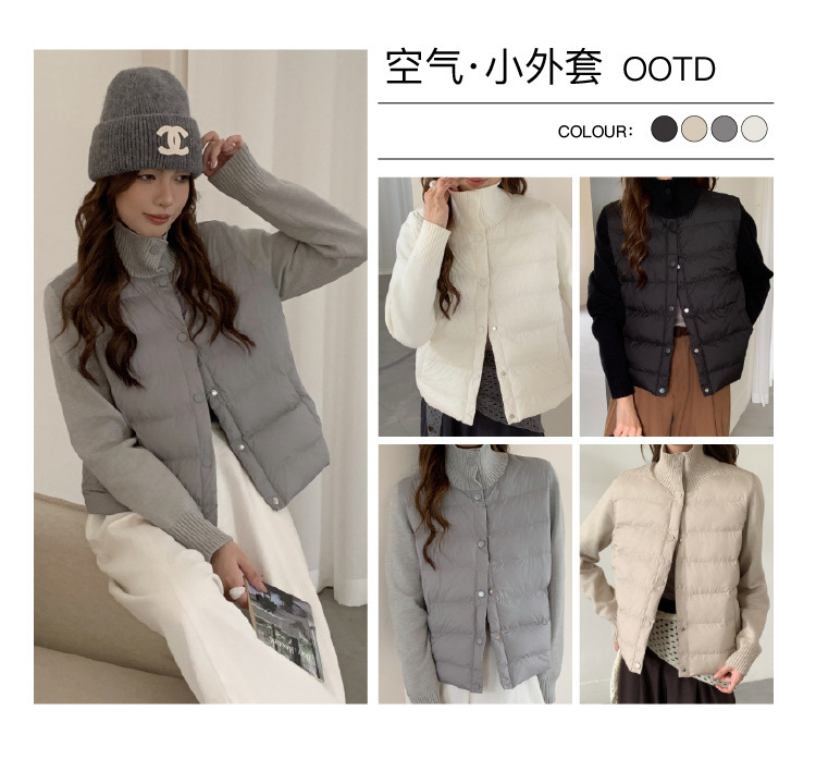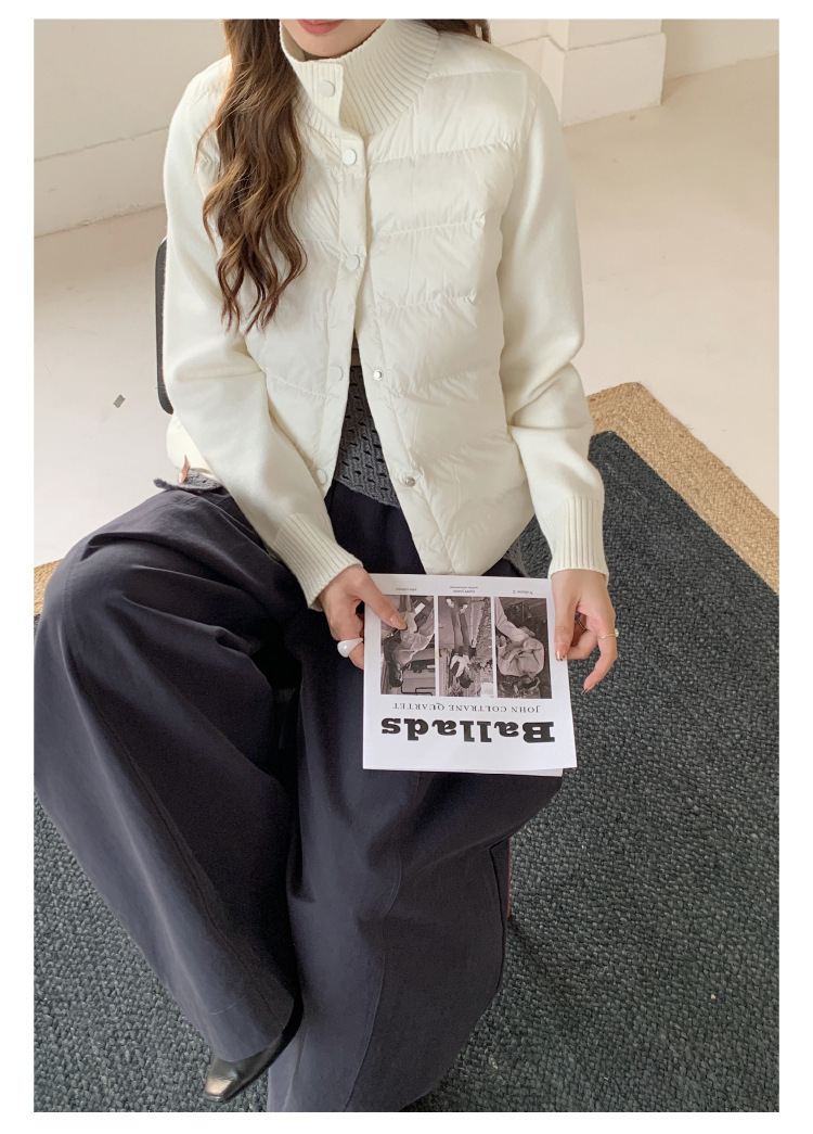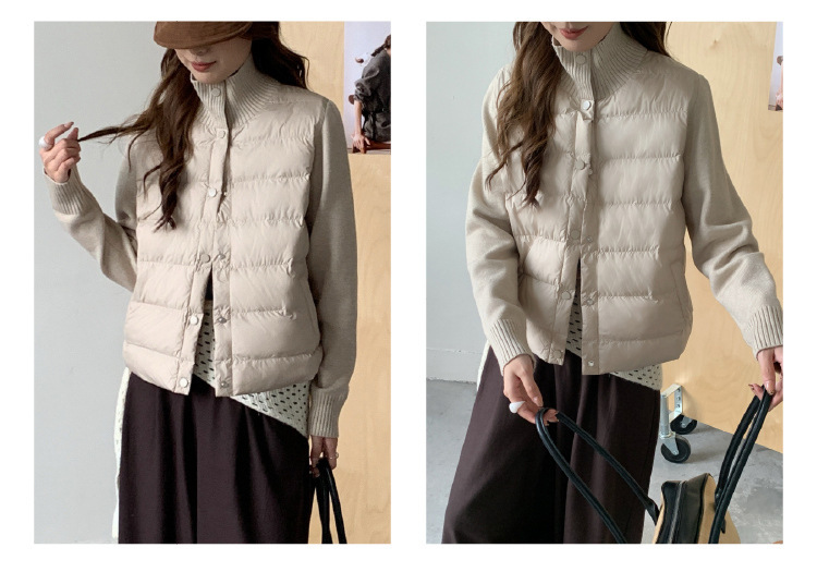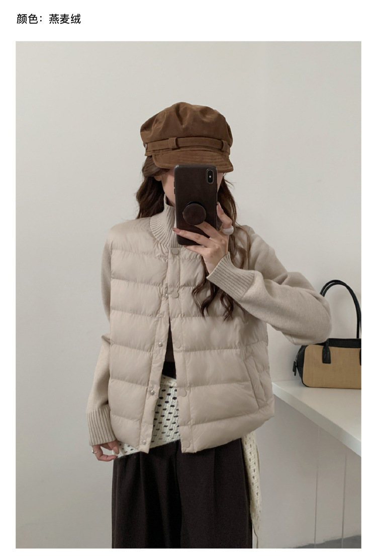 安婷露冬新款空气棉绒服女针织袖保暖纽扣开衫外套轻薄设计感上衣
