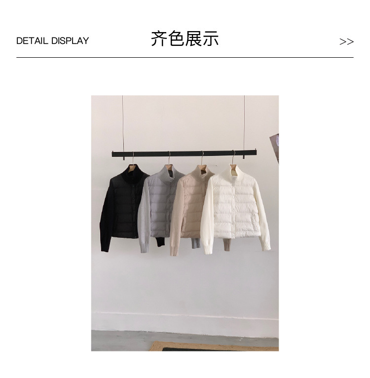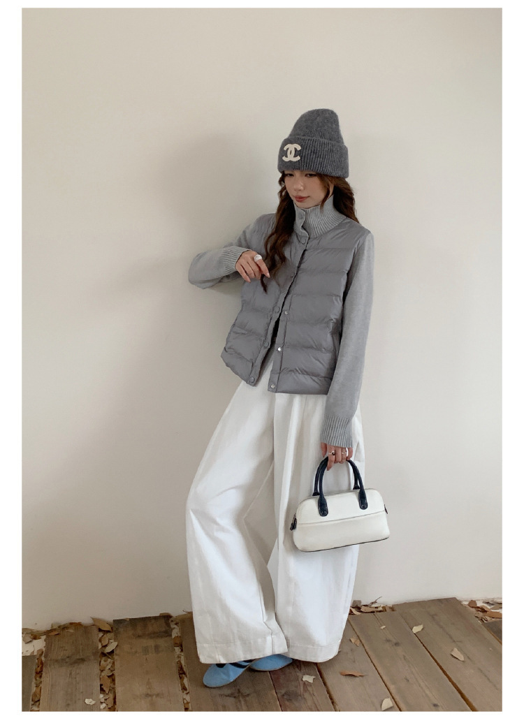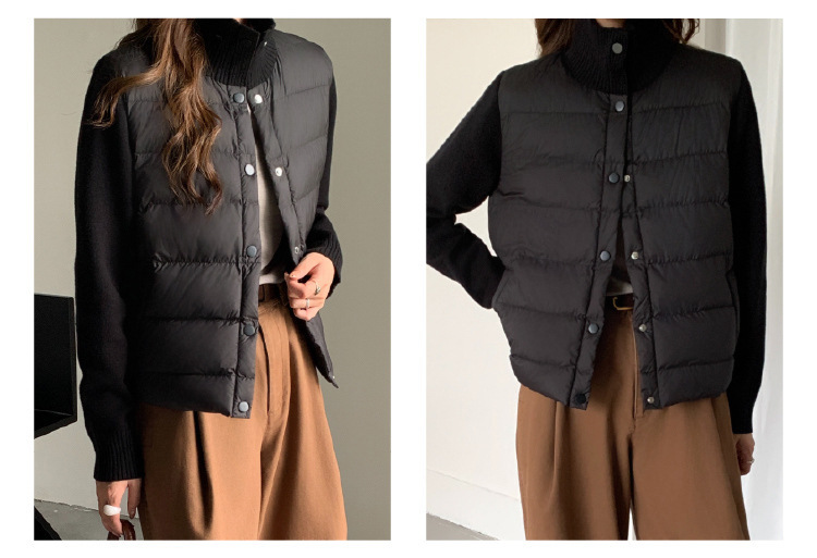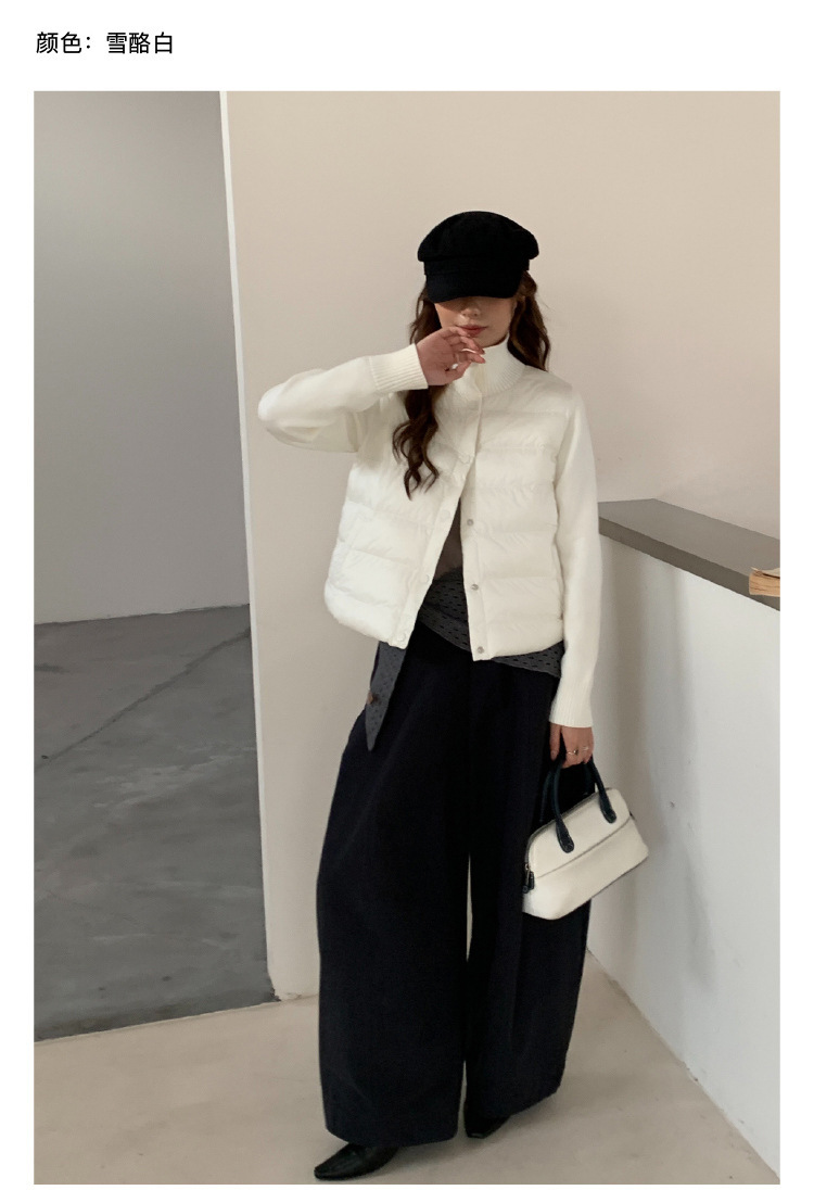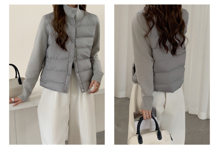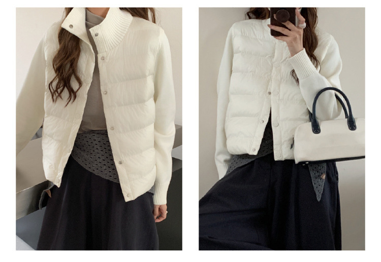 安婷露冬新款空气棉绒服女针织袖保暖纽扣开衫外套轻薄设计感上衣