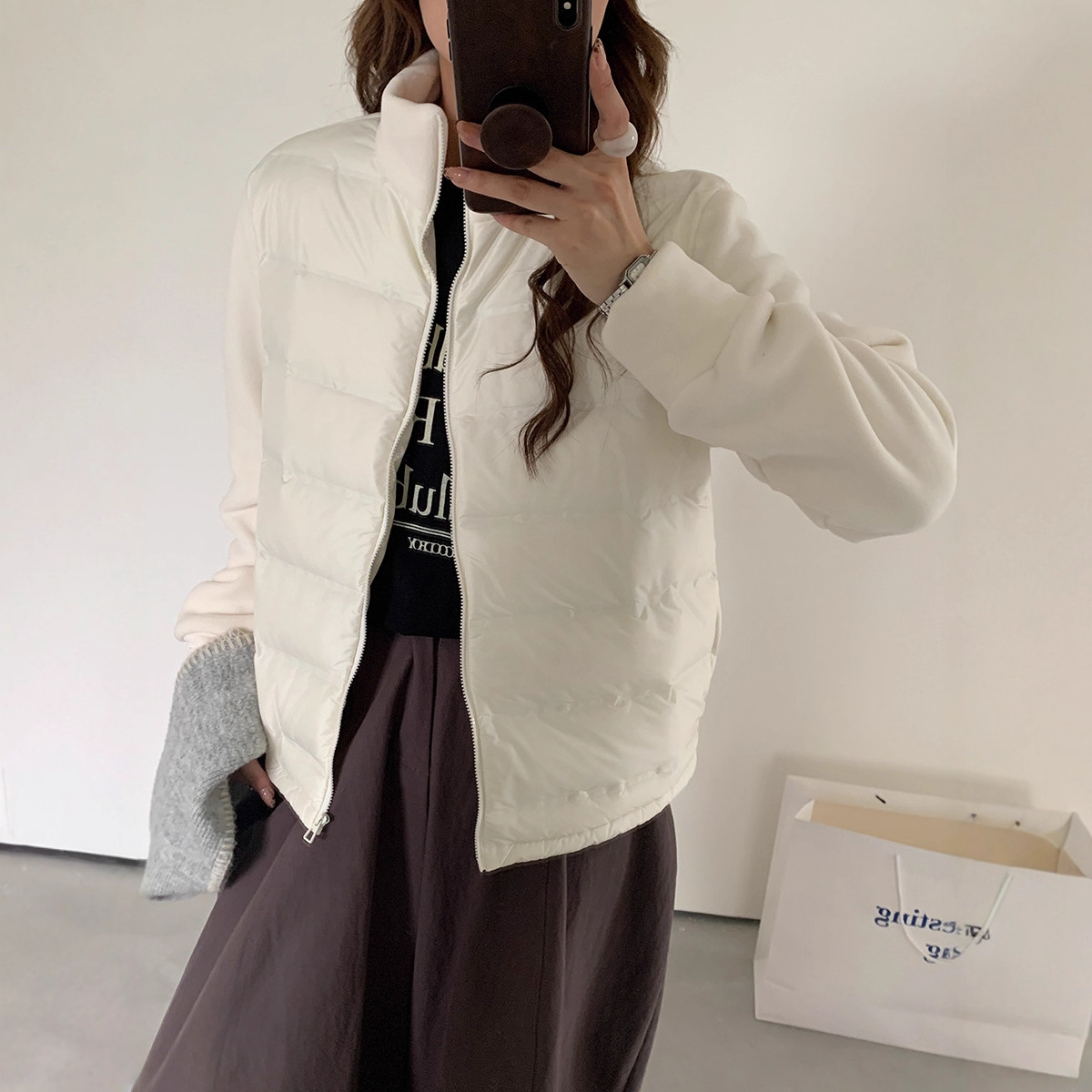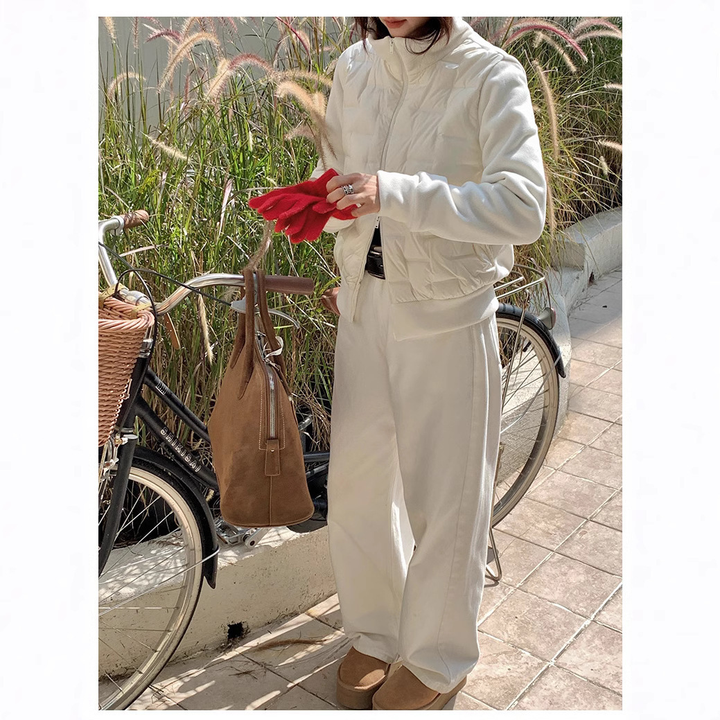 安婷露秋冬新款羽绒外套女摇粒绒鸭绒保暖上衣百搭潮流拉链开衫