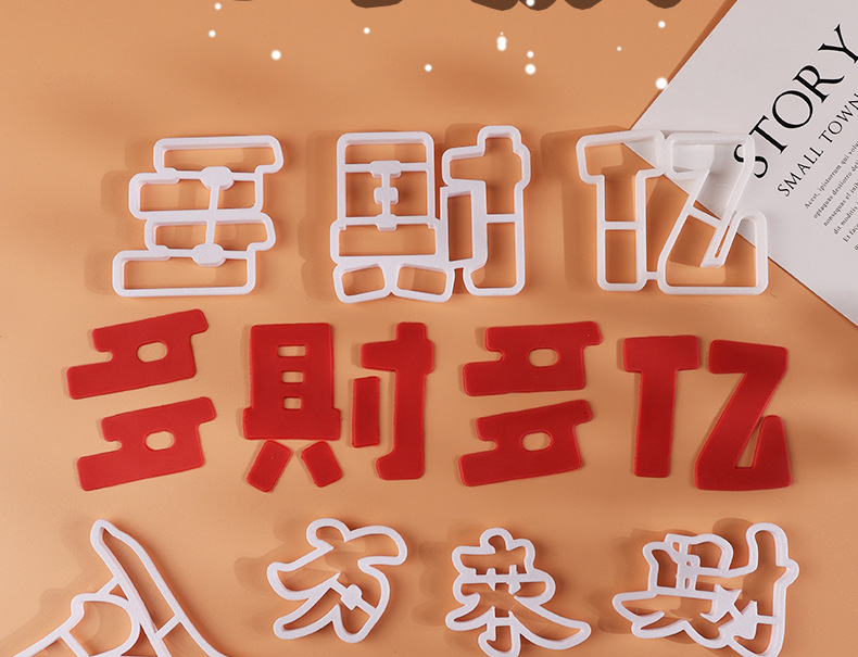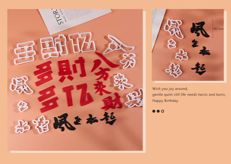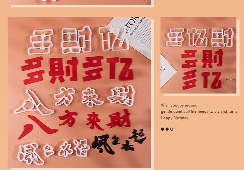 翻糖切模蛋糕装饰开业大吉福气满满祝福语网红3D烘焙刻字塑料模具