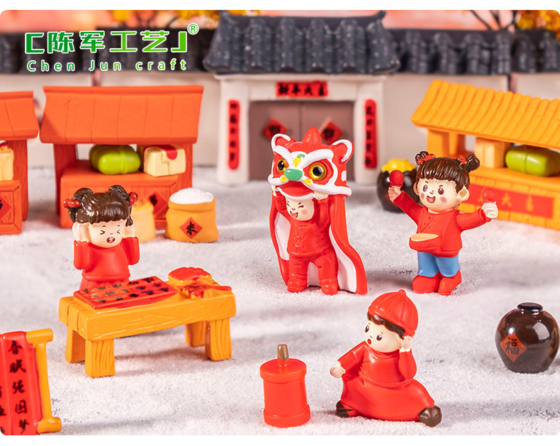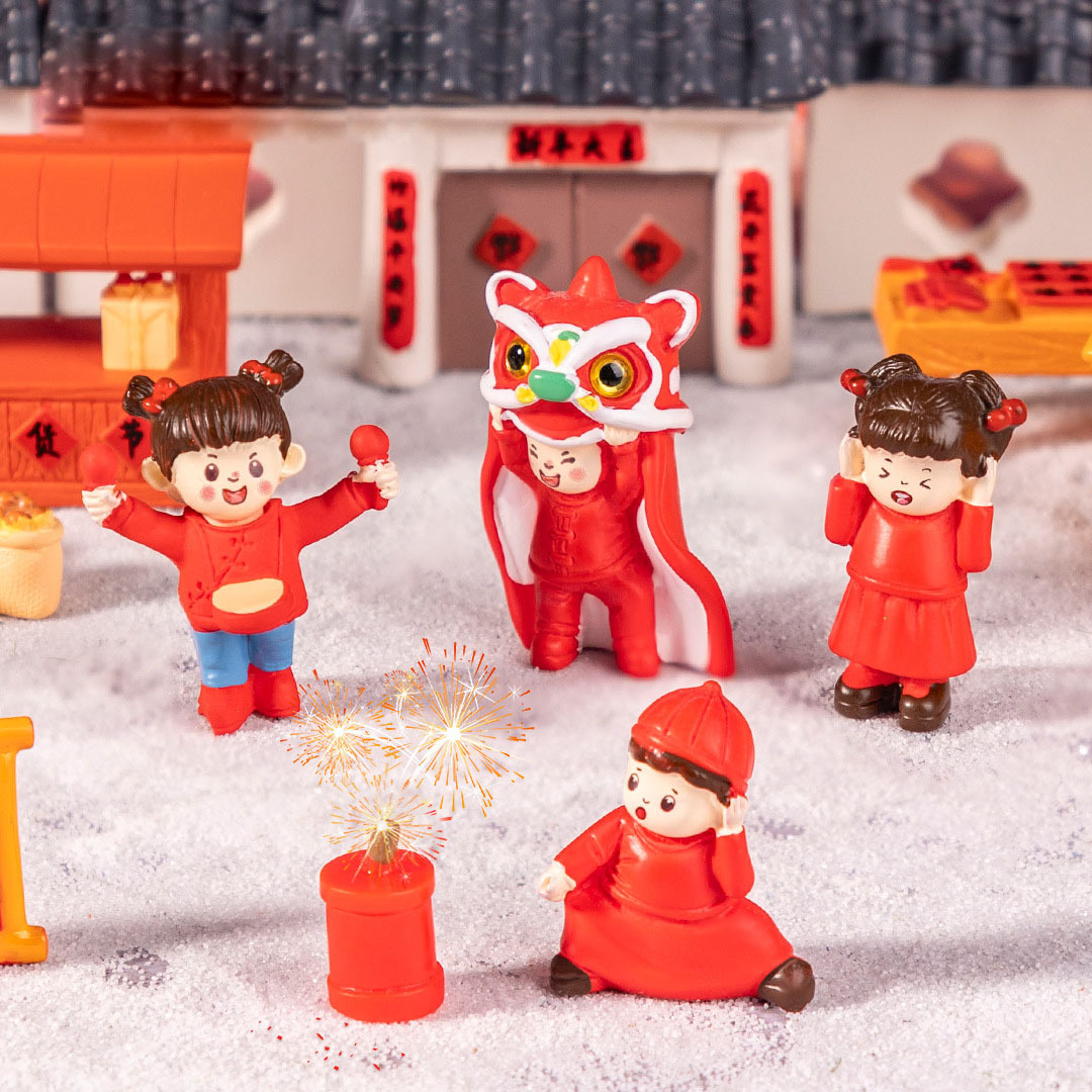 微景観シンプル創意喜迎新年爆竹家対聯子供屋DIY装飾品デスクトップミニ置物