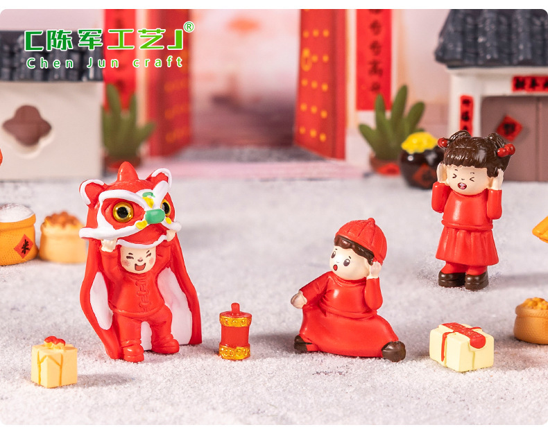 微景观新年舞狮年货娃娃屋 diy装饰品配件迷你招财蛇年迷你小摆件