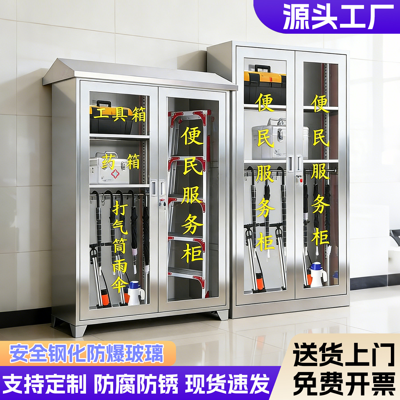 ステンレス消防箱緊急物資装備箱ミニ消防ステーション消防器材箱便民労働保険展示棚