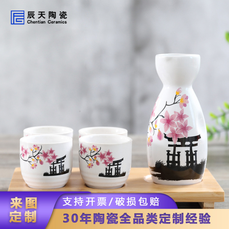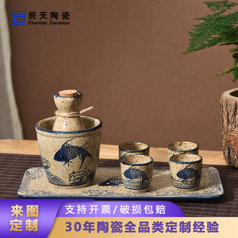 レトロ陶磁器酒具セット梅酒焼酎杯温酒清酒壺白酒分酒器焼酎