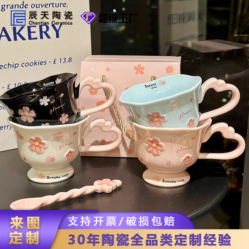 女性用ユニバーサルエンボスセラミックコーヒーカップ、ラブハンドル、家庭用マグカップ、高見えミルクカップ、コンパニオンギフト