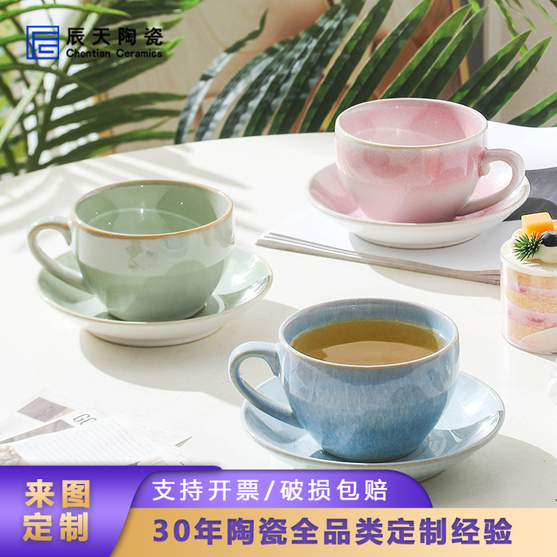 レトロな窯変セラミックコーヒーカップ、高価値ラテアートカップ、マグカップ、アフタヌーンティーセット、カップ&ソーサーセット