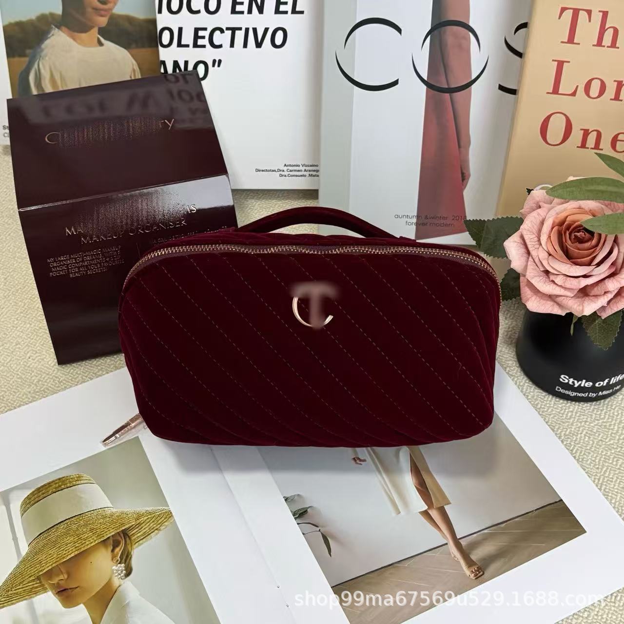 C好莱坞酒红丝绒化妆包洗漱包收纳包 分层收纳空间大实用