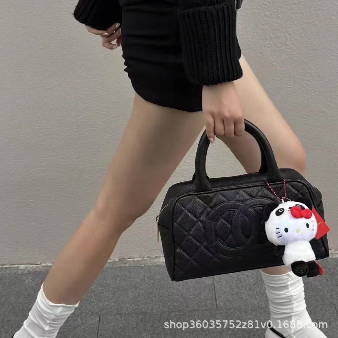 中古ジェニー同型ボウリングバッグ 2025 新しいレトロなライチ柄ポータブルボストンレディースバッグ Kangpeng