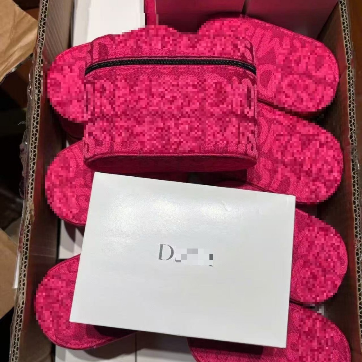 迪玫粉色馥郁字母印花化妆包收纳包 玫红色化妆箱全新带盒