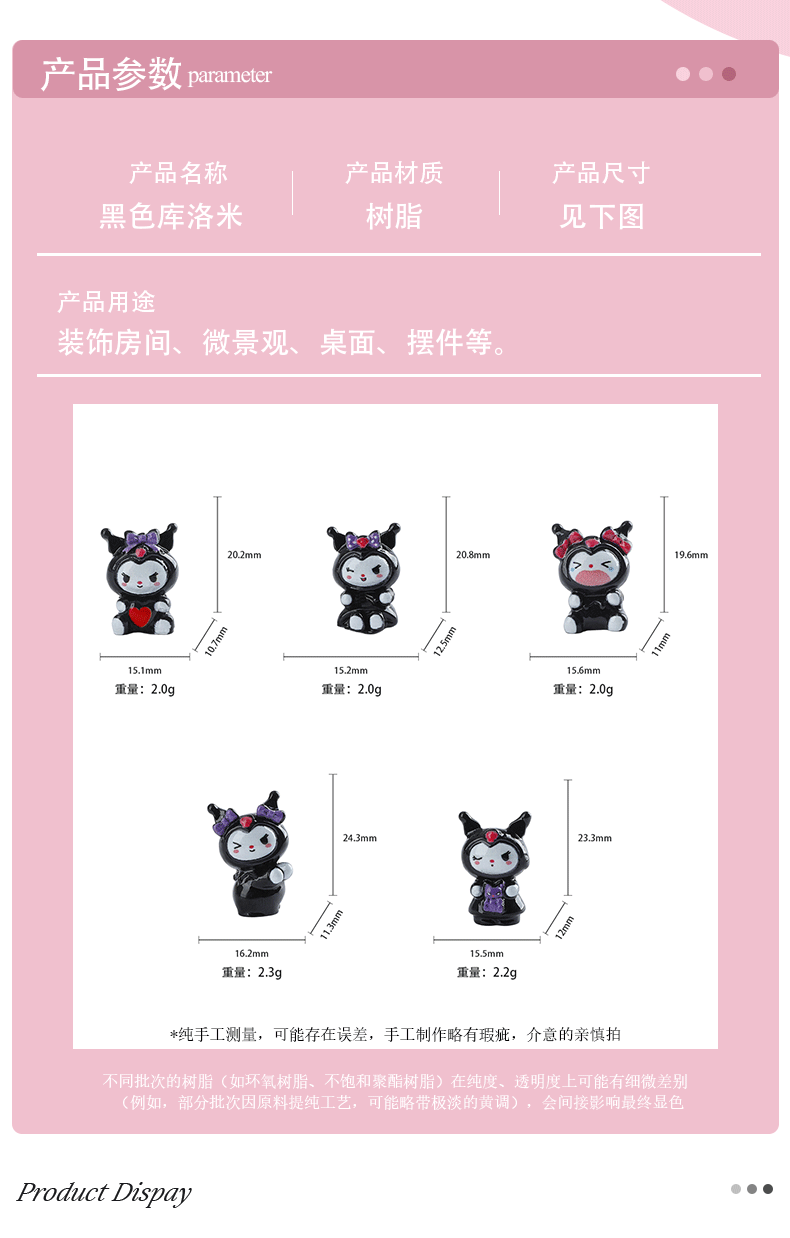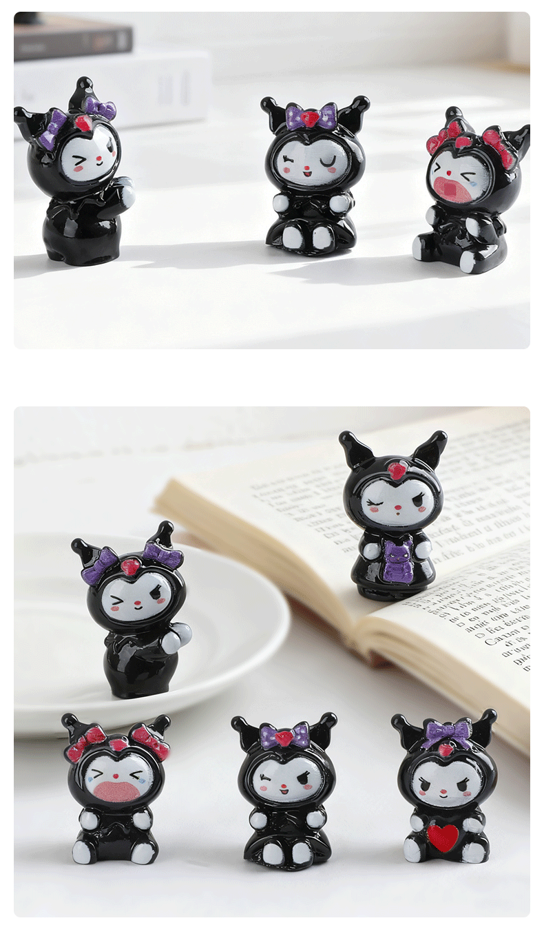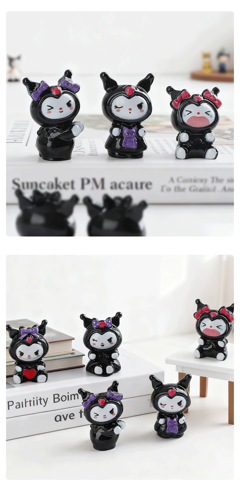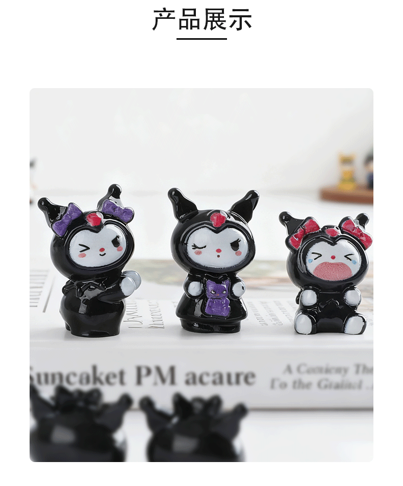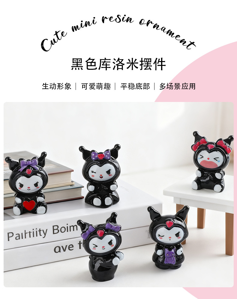 树脂仿真卡通黑色库洛米摆件 新品DIY配饰过家家桌面摆件自制挂件