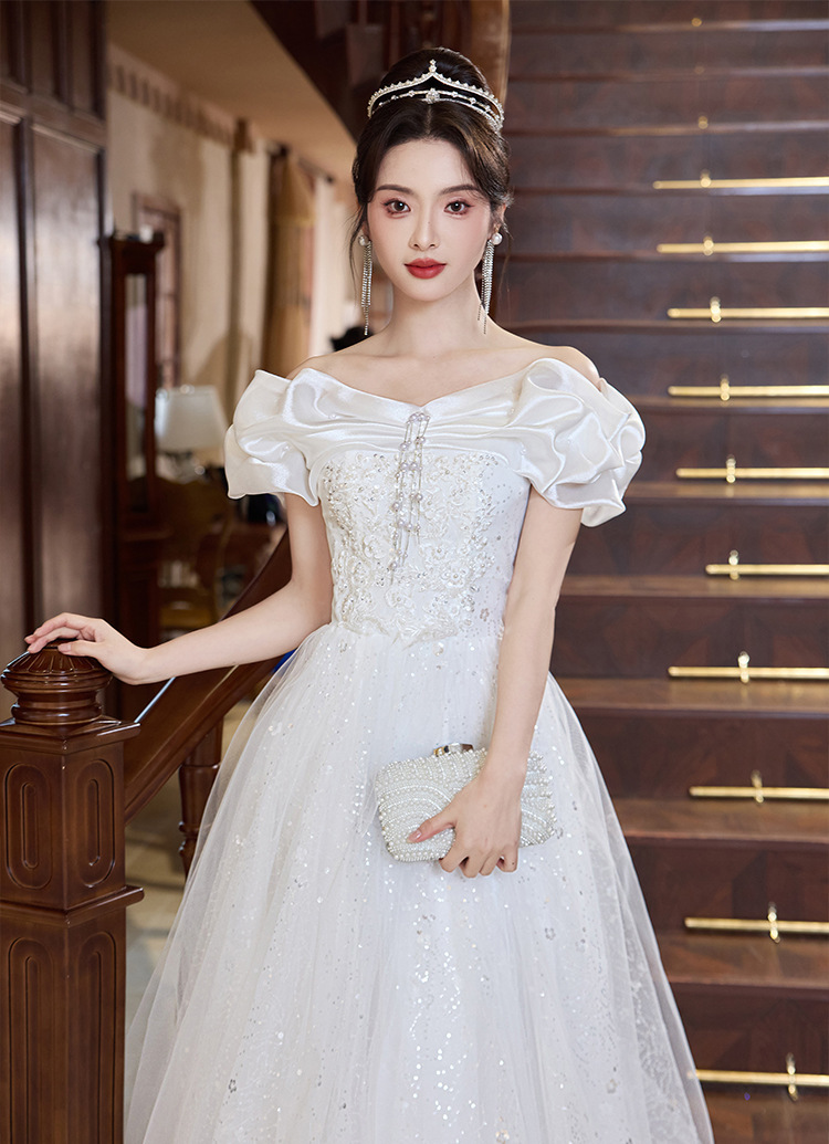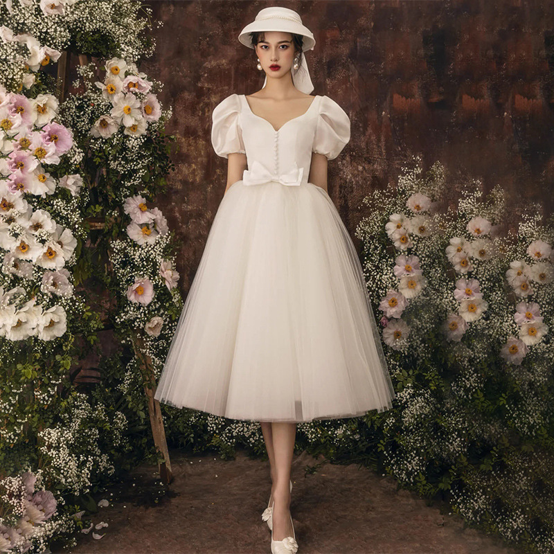 フランス風鍛造生地の軽いウェディングドレス、秋冬新作、結婚式、宴会、イブニングドレス、普段着としても着用可能、登録・結婚証明書用ドレス