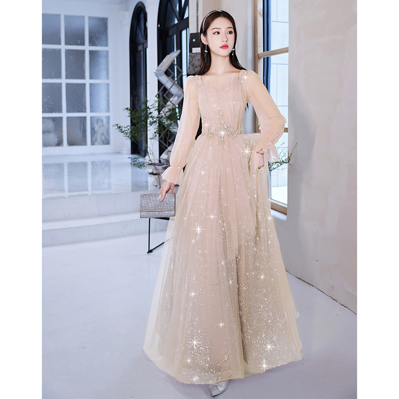 香槟色长袖晚礼服2025新款主持钢琴艺考成人礼宴会气质轻奢晚礼服