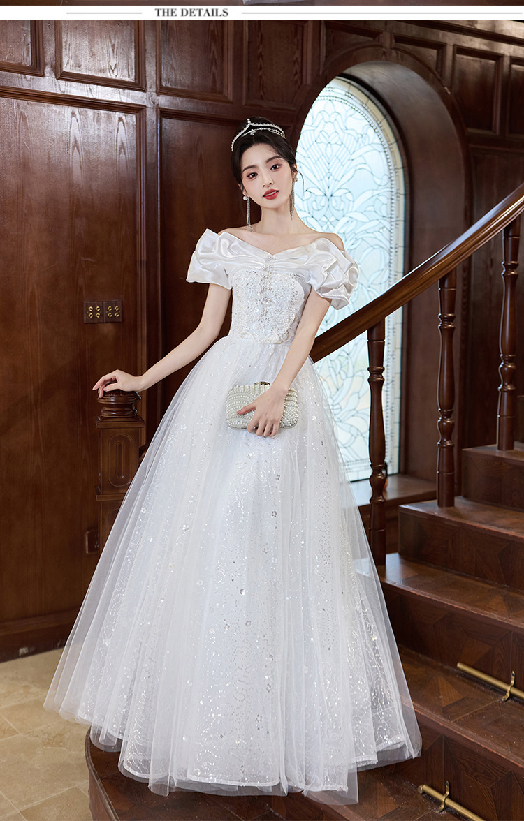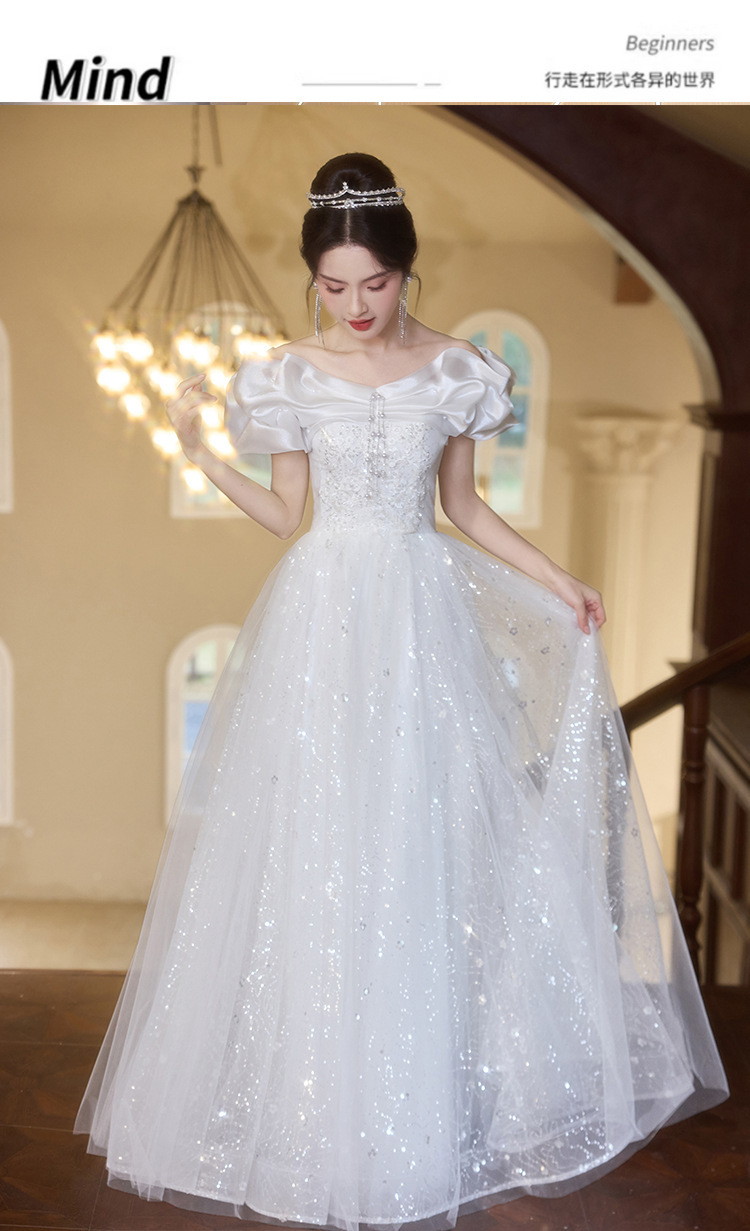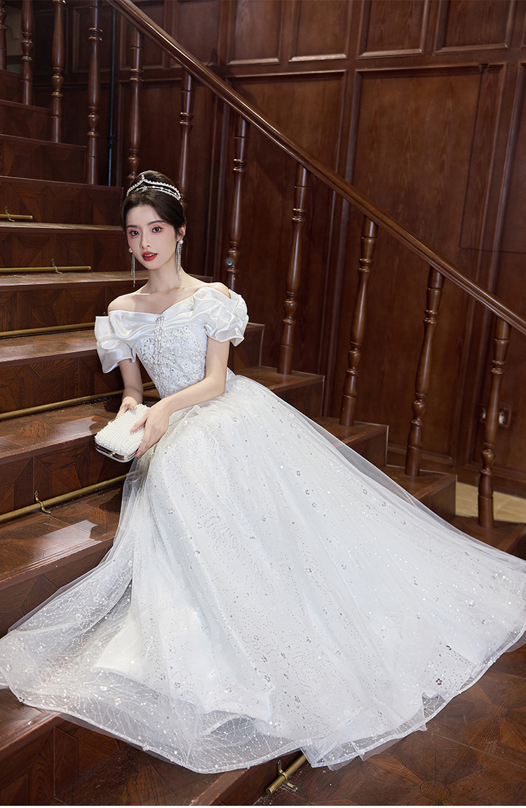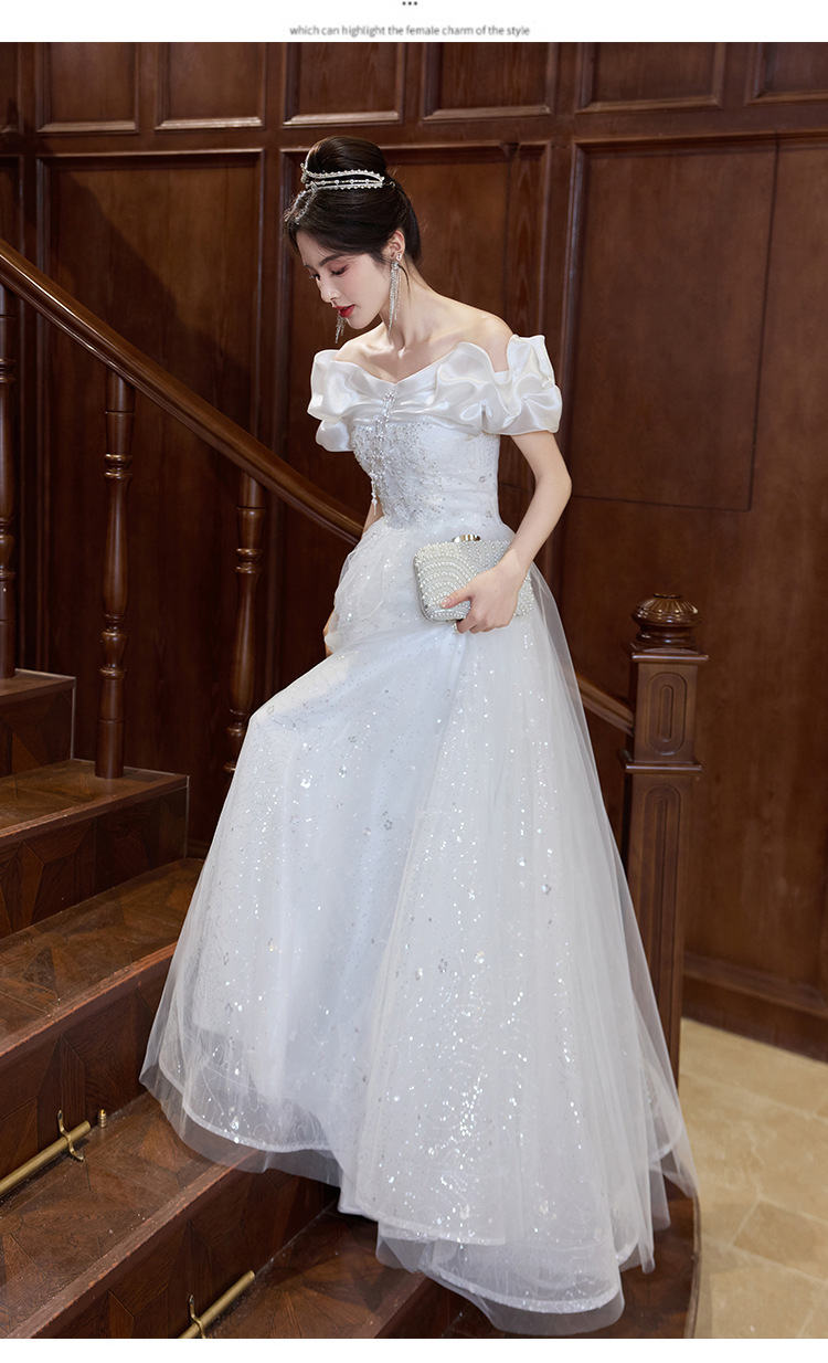 白色晚礼服轻奢2025新款新娘旅拍轻礼服婚纱主持人声乐艺考礼服裙