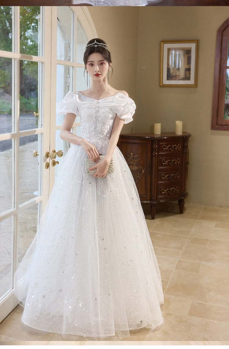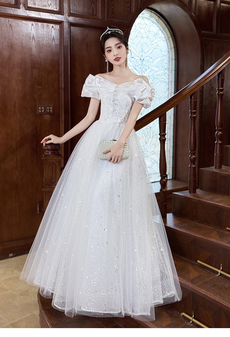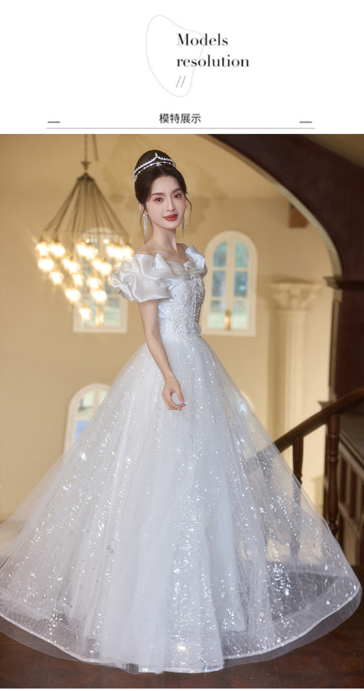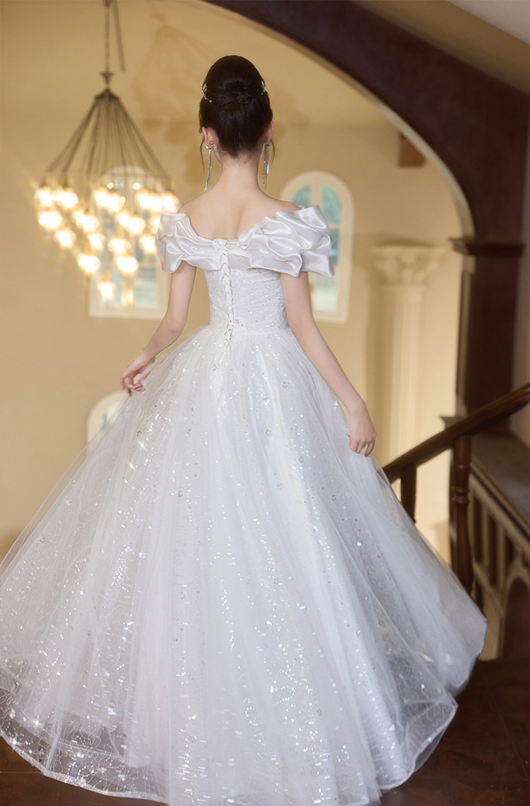 白色晚礼服轻奢2025新款新娘旅拍轻礼服婚纱主持人声乐艺考礼服裙