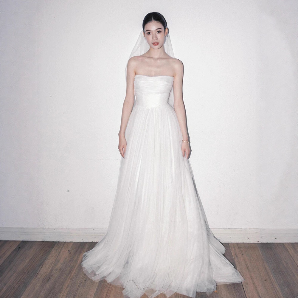 森系超仙轻婚纱2025新款新娘轻奢小众抹胸出门纱拖尾迎宾礼服裙