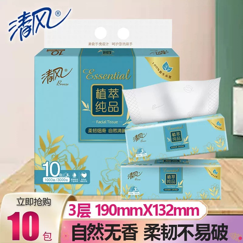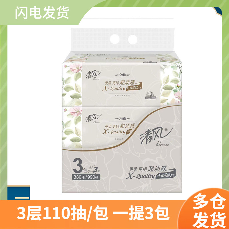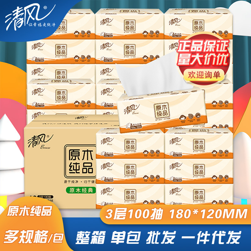 清风原木纯品抽纸3层100抽24包30包40包BR12XS实惠单包一件代发