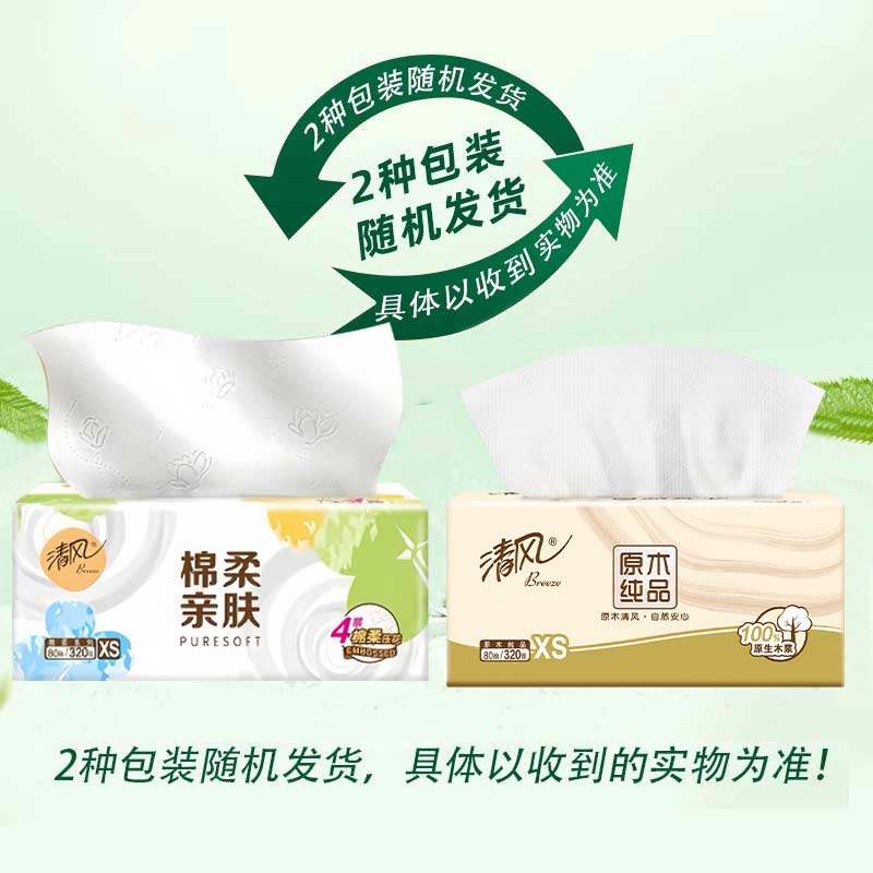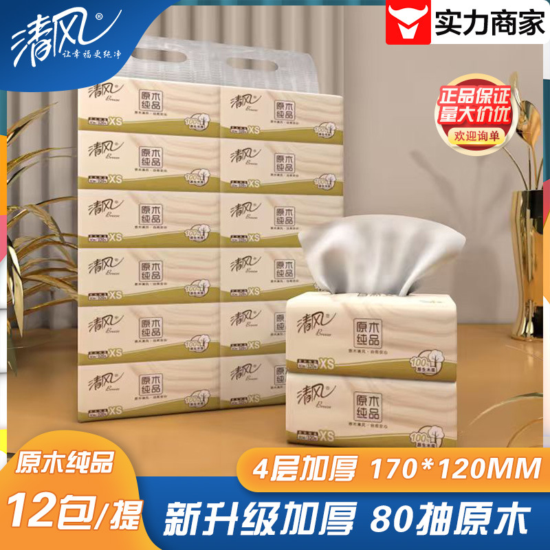 清风抽纸原木纯品抽纸4层80抽12包/提家用BRC0XSCE批发代发