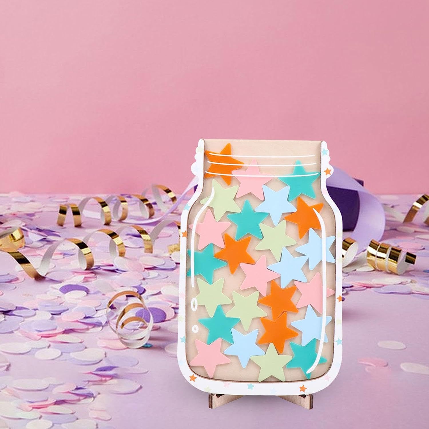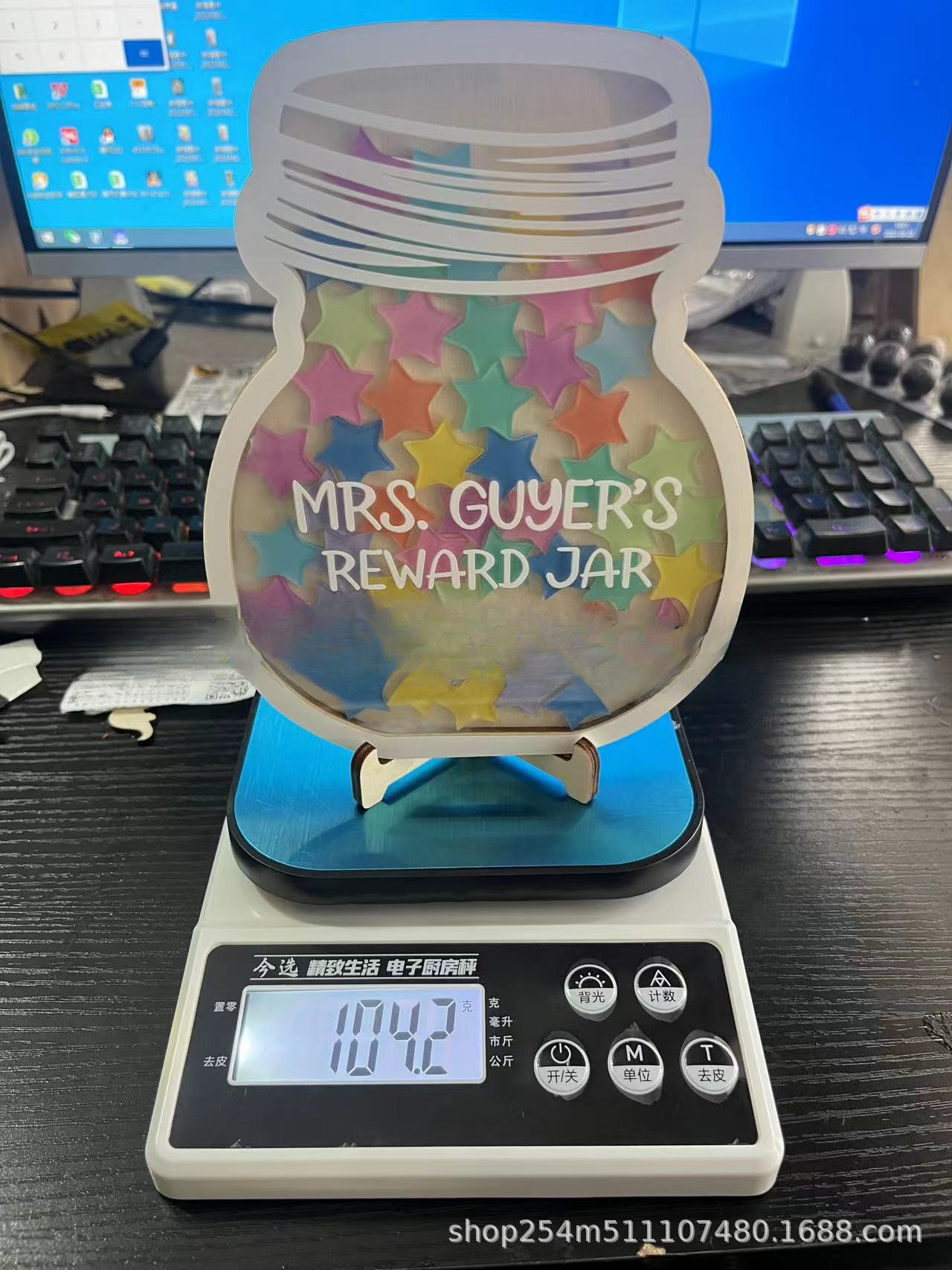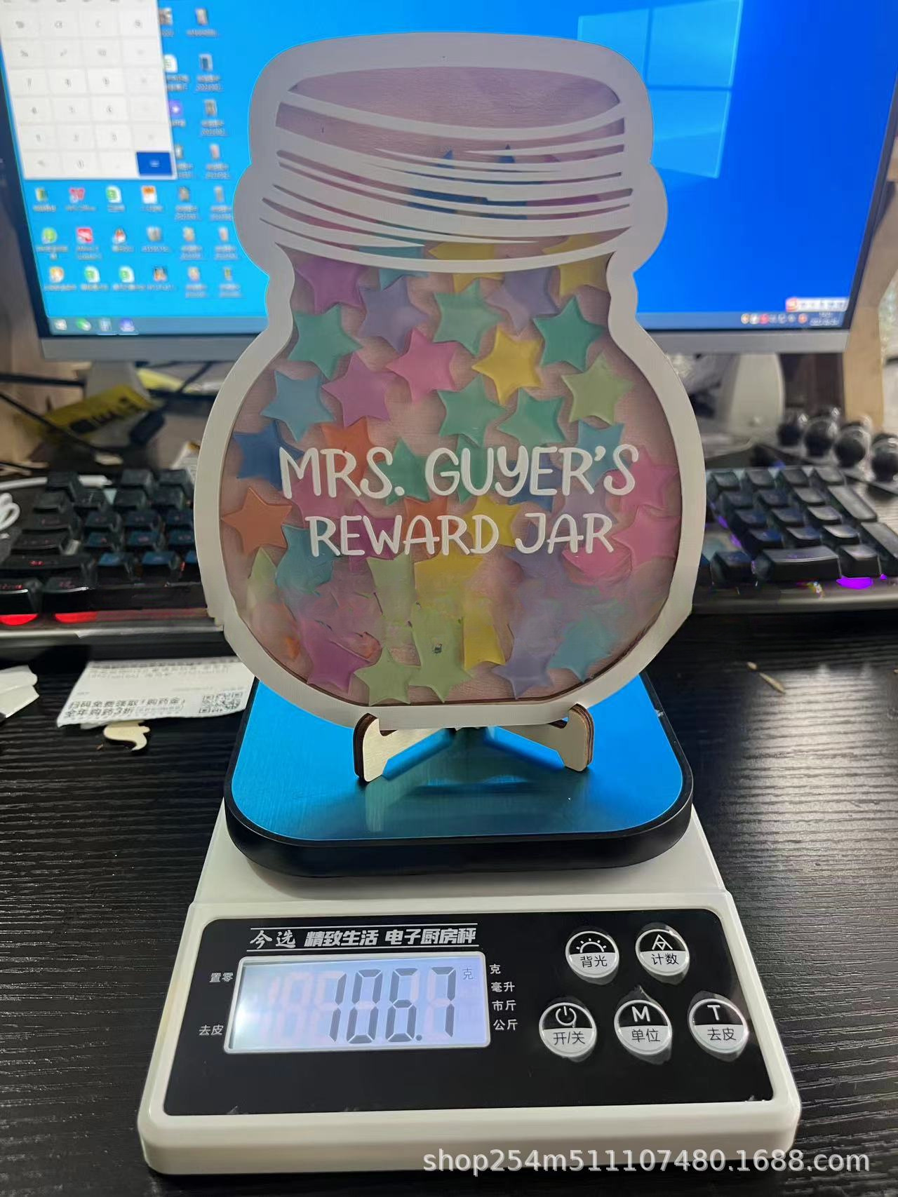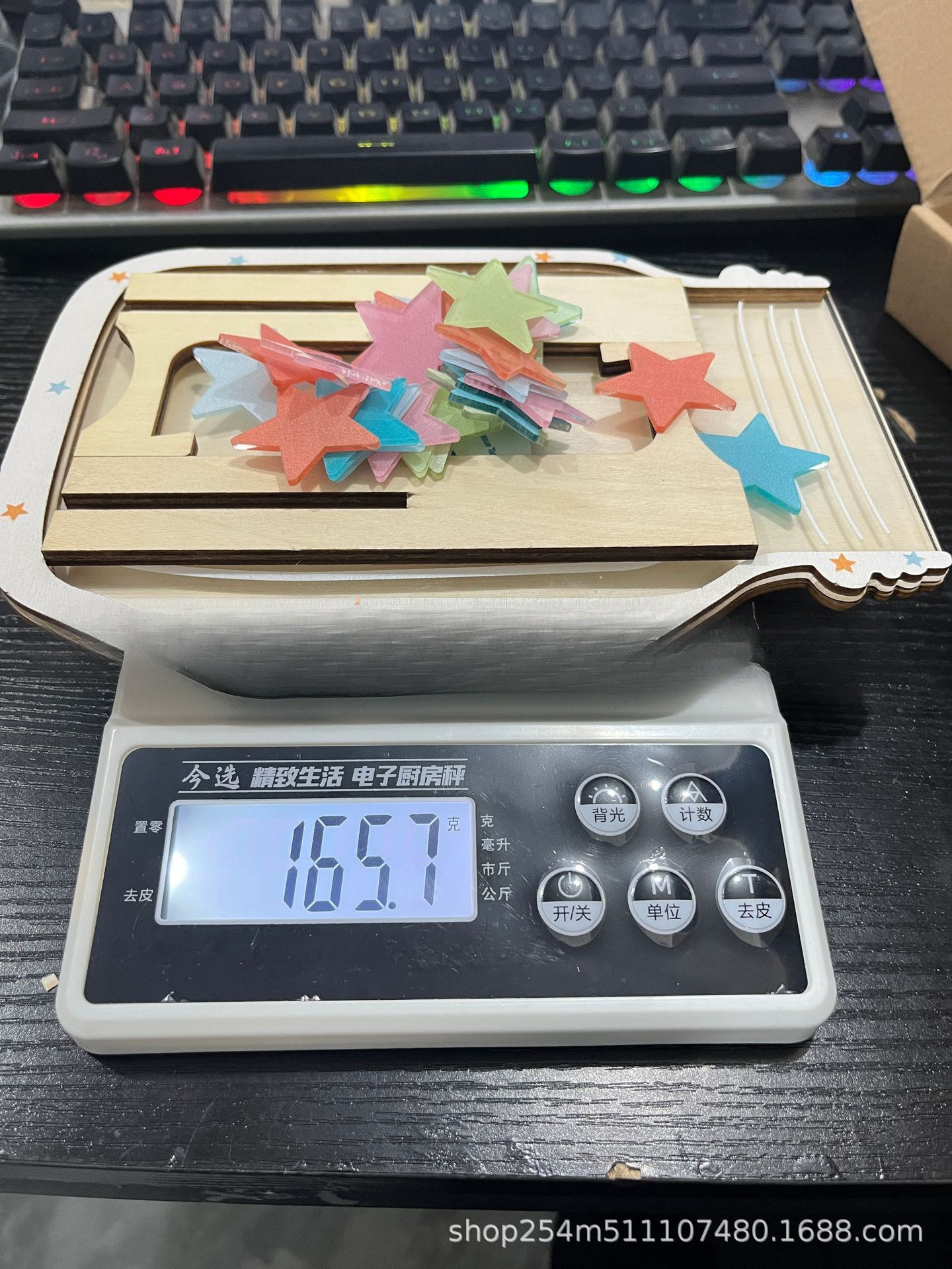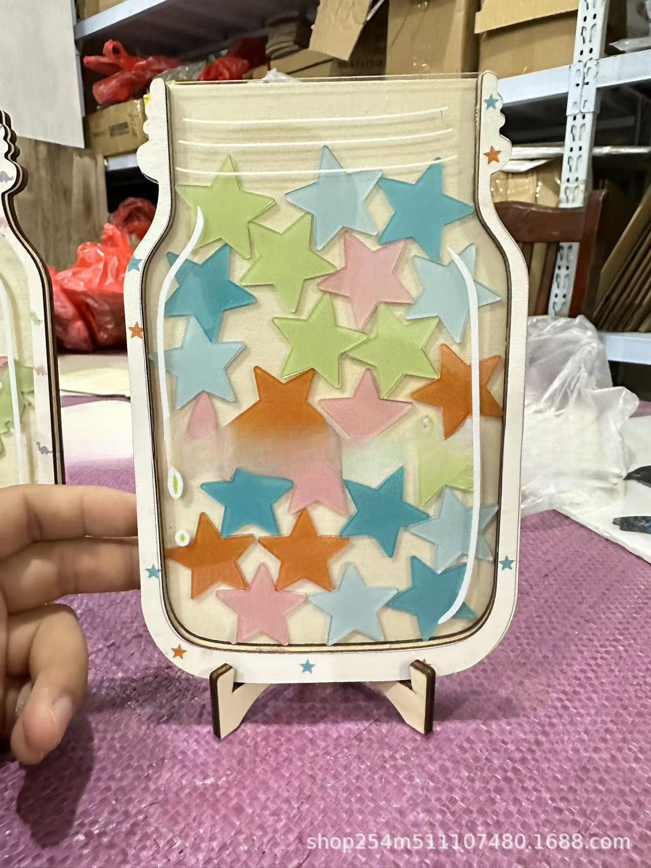 产品配25个小星星/动物,5款颜色每款颜色5个,配一套支架,加一片磁片