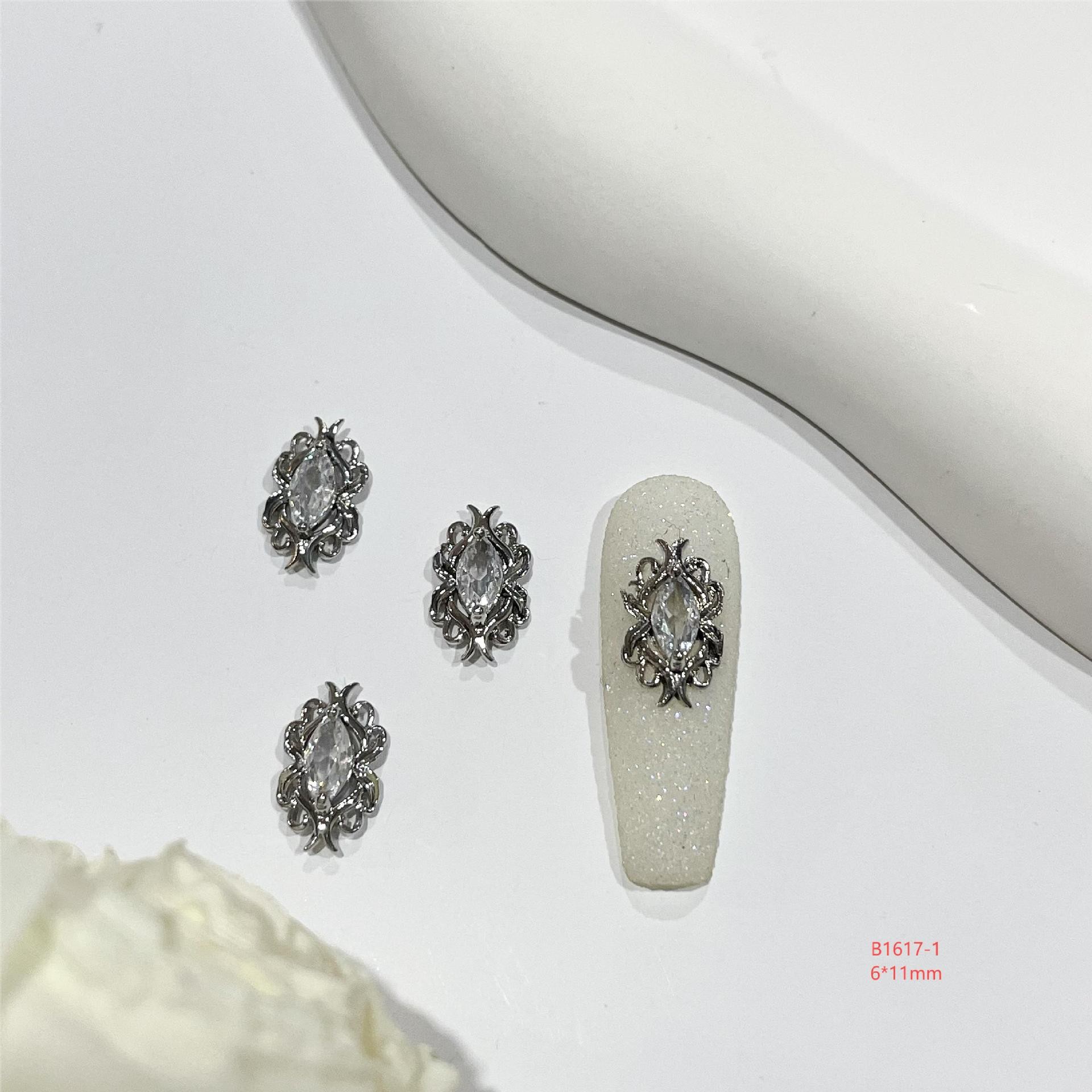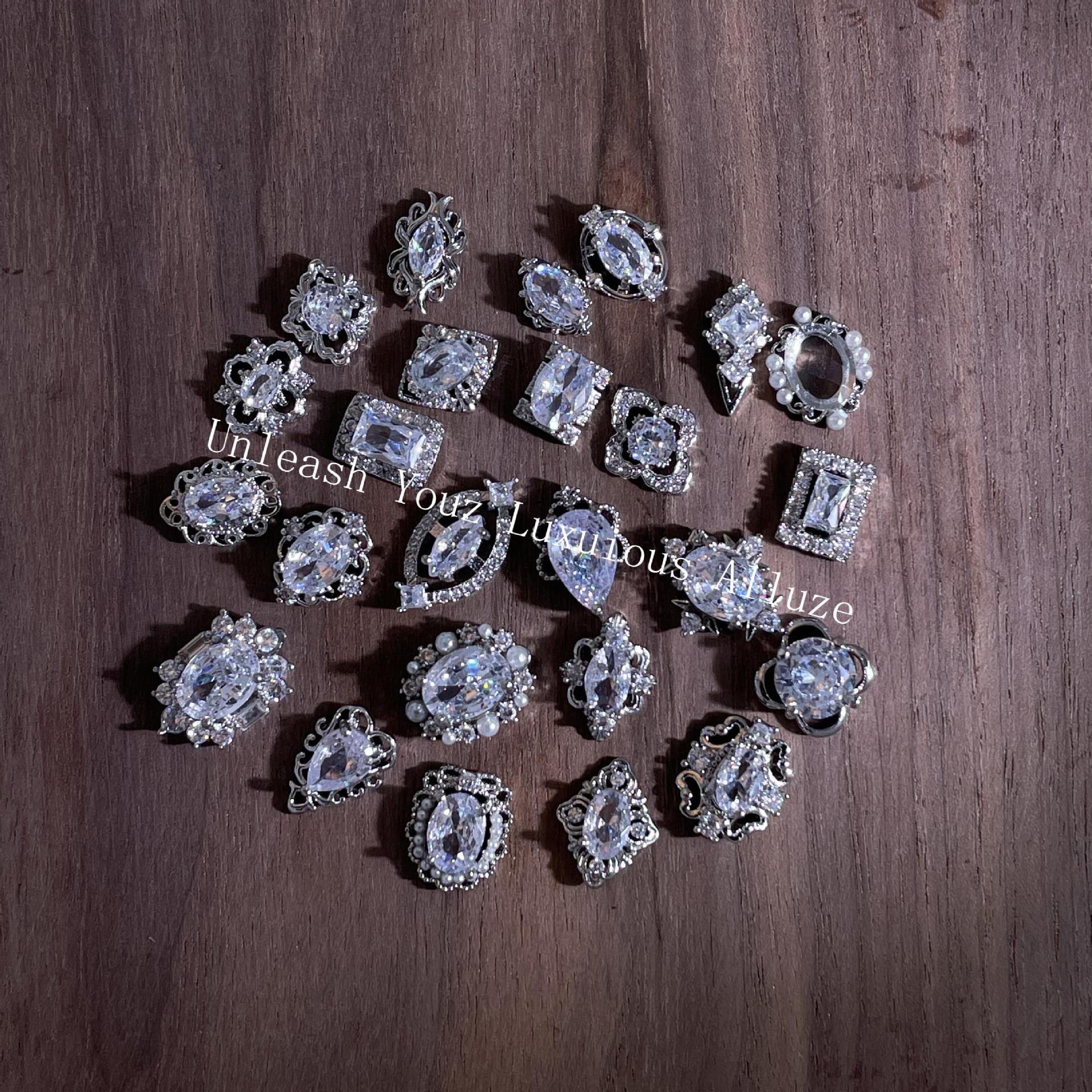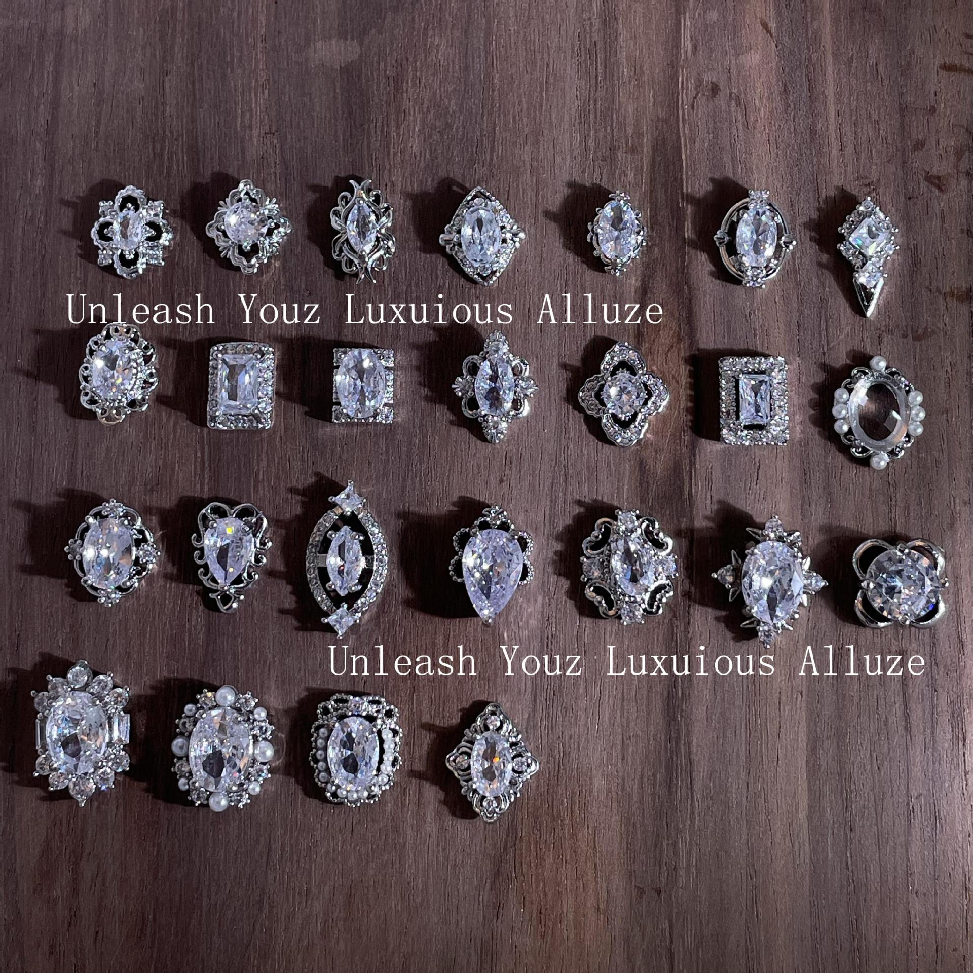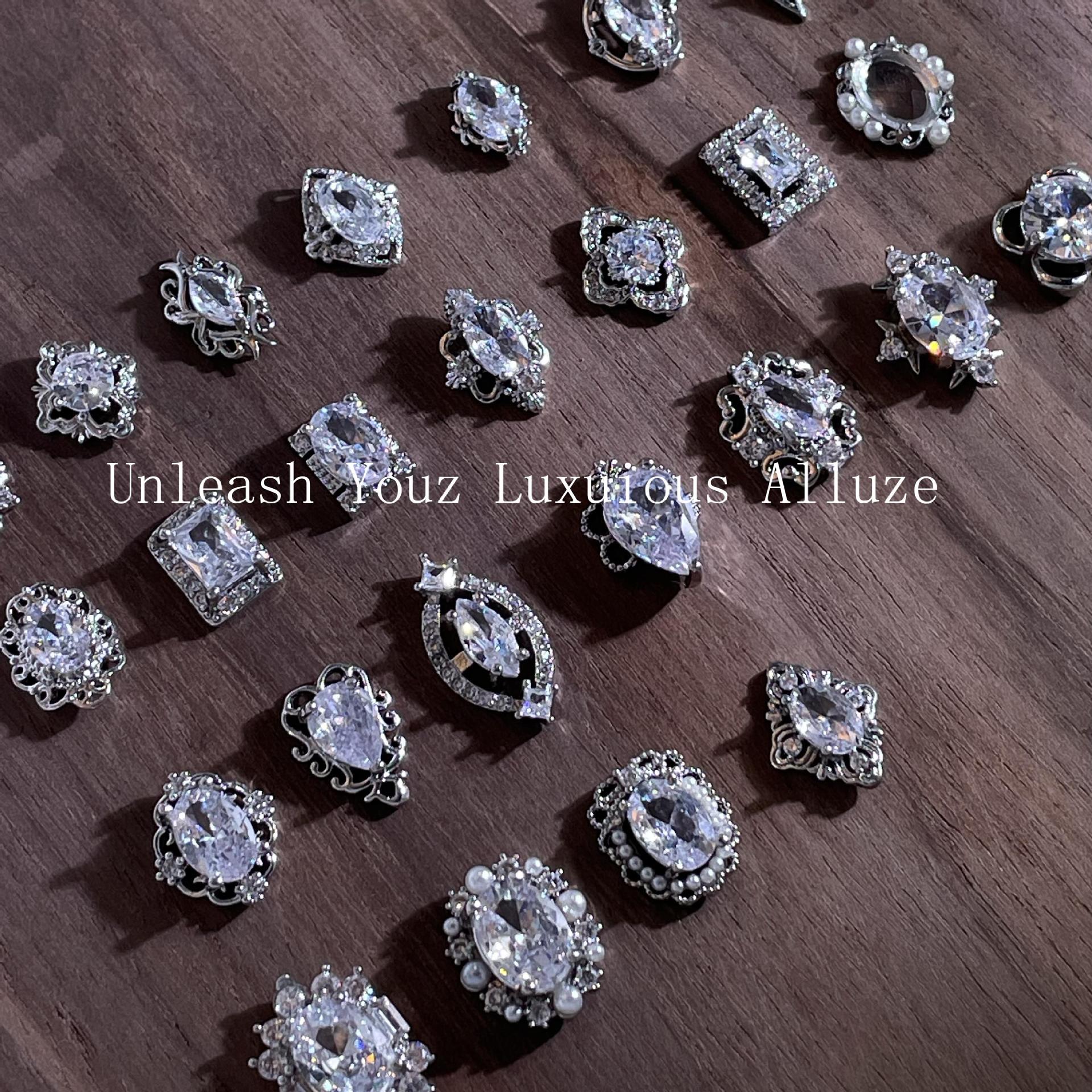 lz新款466美甲钻合金属美甲锆石饰品银白复古风宫廷风美甲饰品
