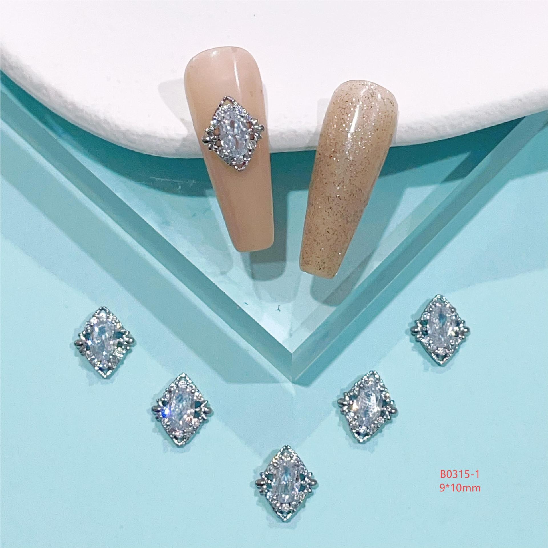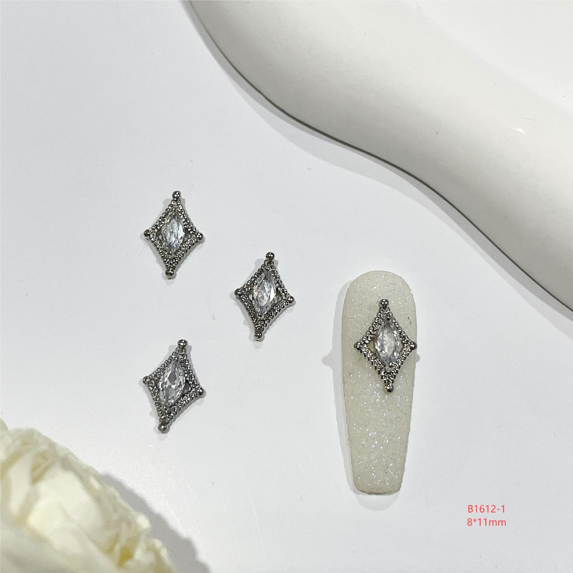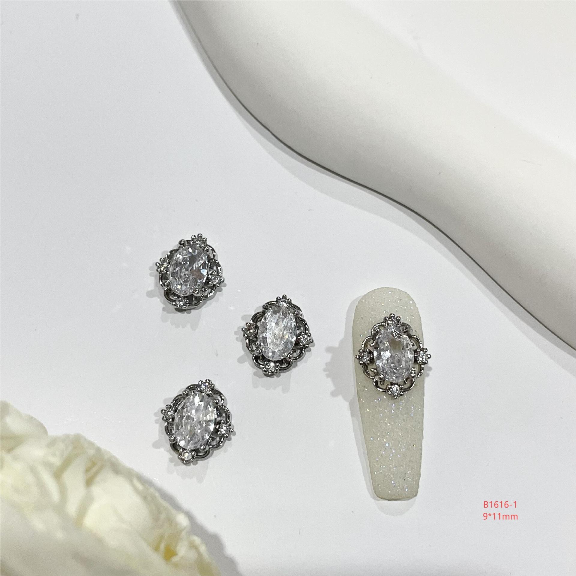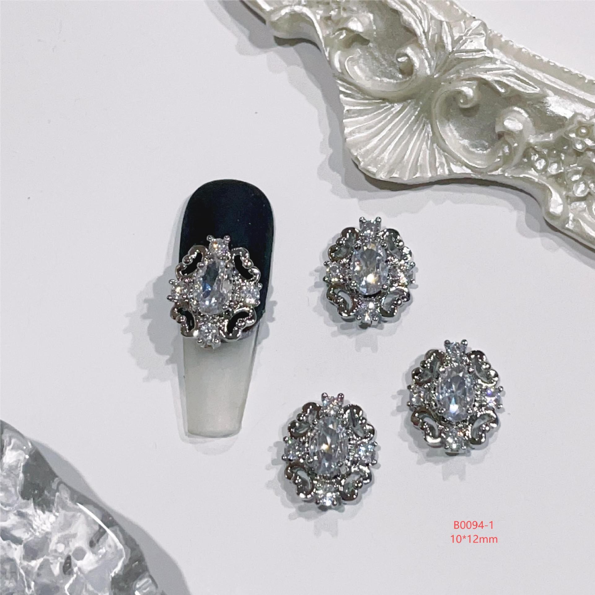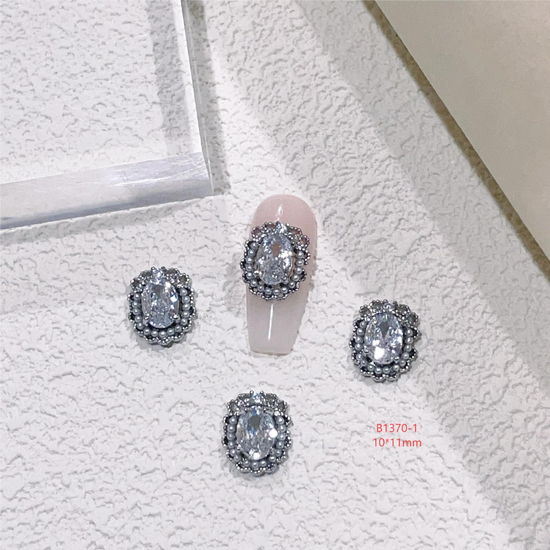 lz新款466美甲钻合金属美甲锆石饰品银白复古风宫廷风美甲饰品