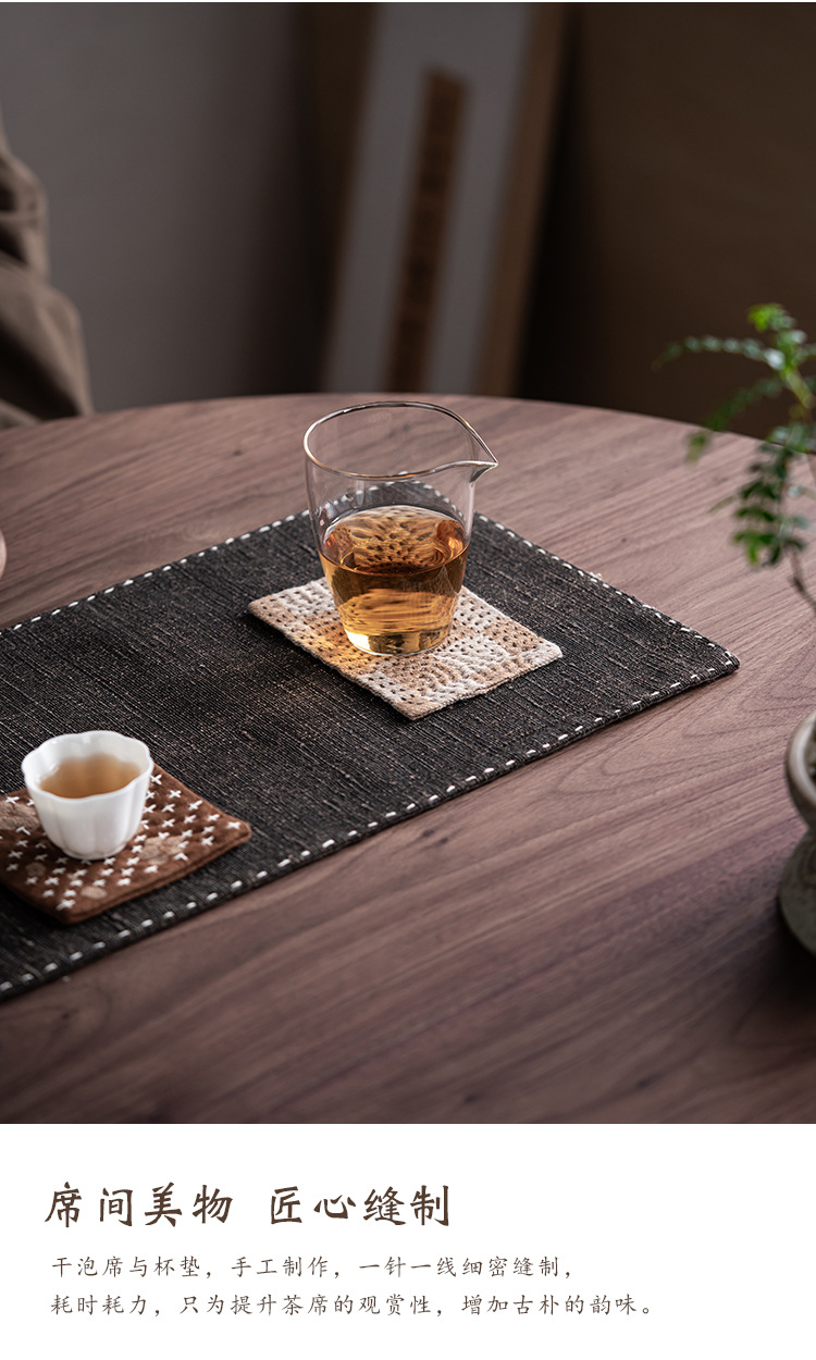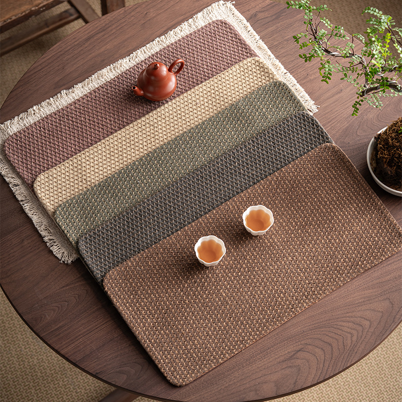 古材香雲糸茶マット手縫い両面マルベリーティーマット軽い高級生地断熱禅茶道素朴なテーブルフラッグ
