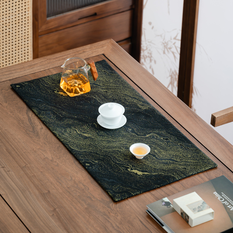 2025 新両面金箔ティーマットドライフォームマットハイエンドライト高級ティールームロングティーテーブルクロステーブルフラグ卸売