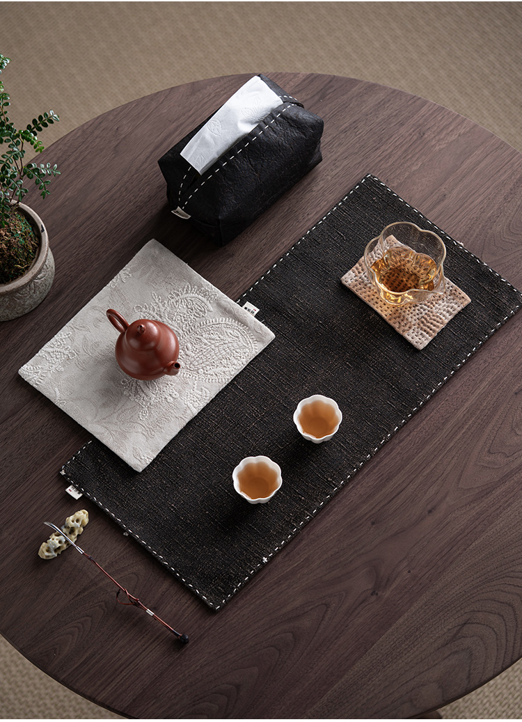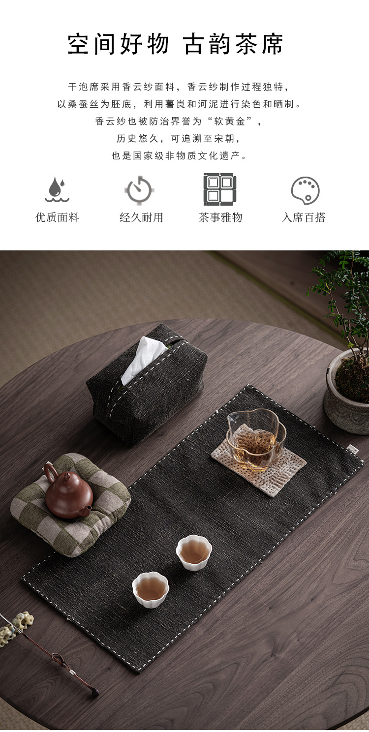 香云纱手缝干泡席复古禅意茶席家用茶桌防烫垫子茶台吸水双面隔热