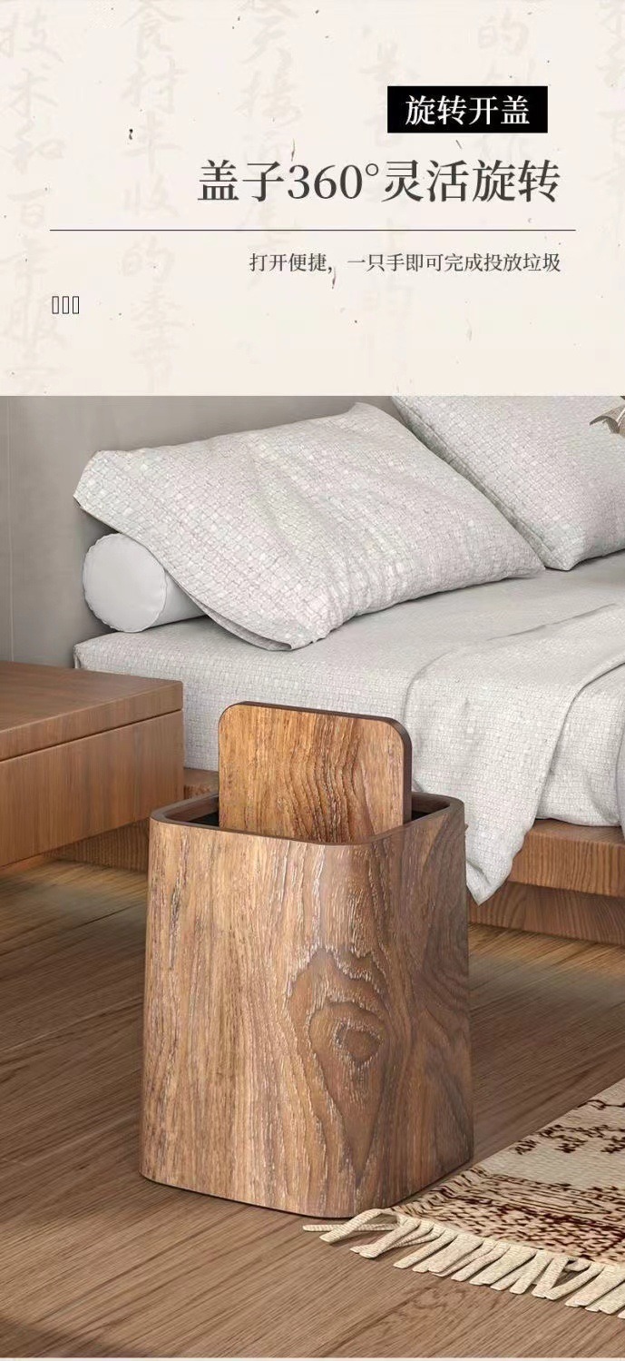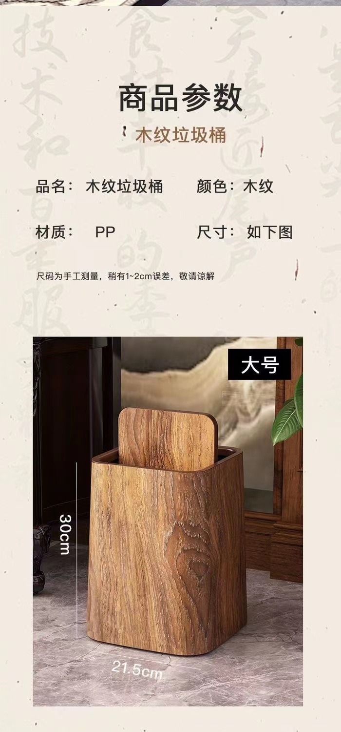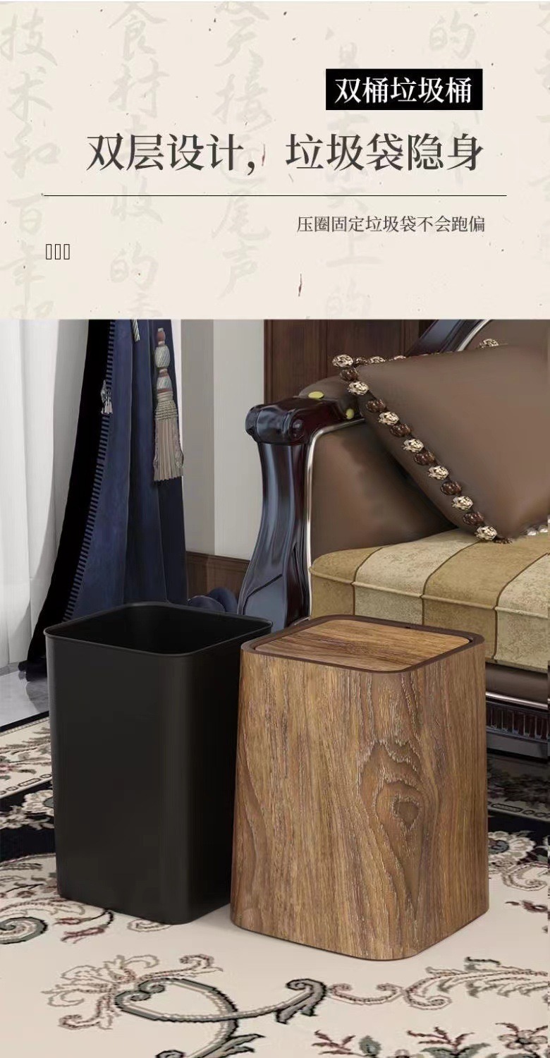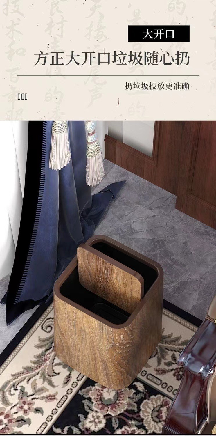 新中式复古仿木纹垃圾桶家用大容量客厅厨房卫生间酒店民宿大纸篓