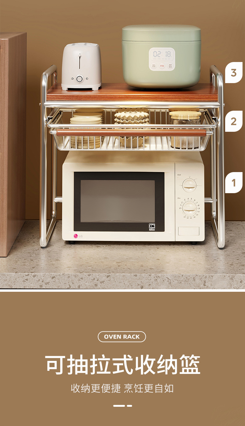 厨房台面电饭锅放置架家用烤箱架收纳空气炸锅置物架微波炉置物架