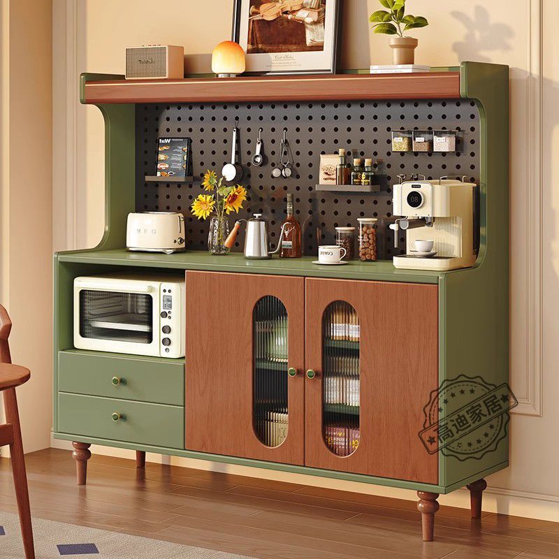 实木餐边柜靠墙一体收纳茶水柜中古风收纳柜咖啡机厨房客厅储物柜