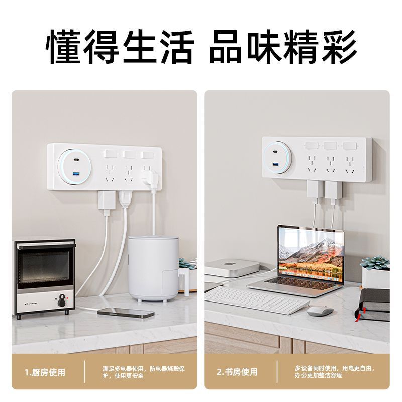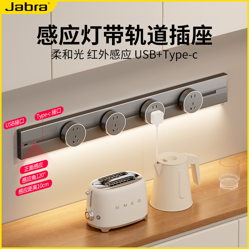 新款语音控制轨道灯带可移动滑轨餐边柜厨房多功能大功率转换插排