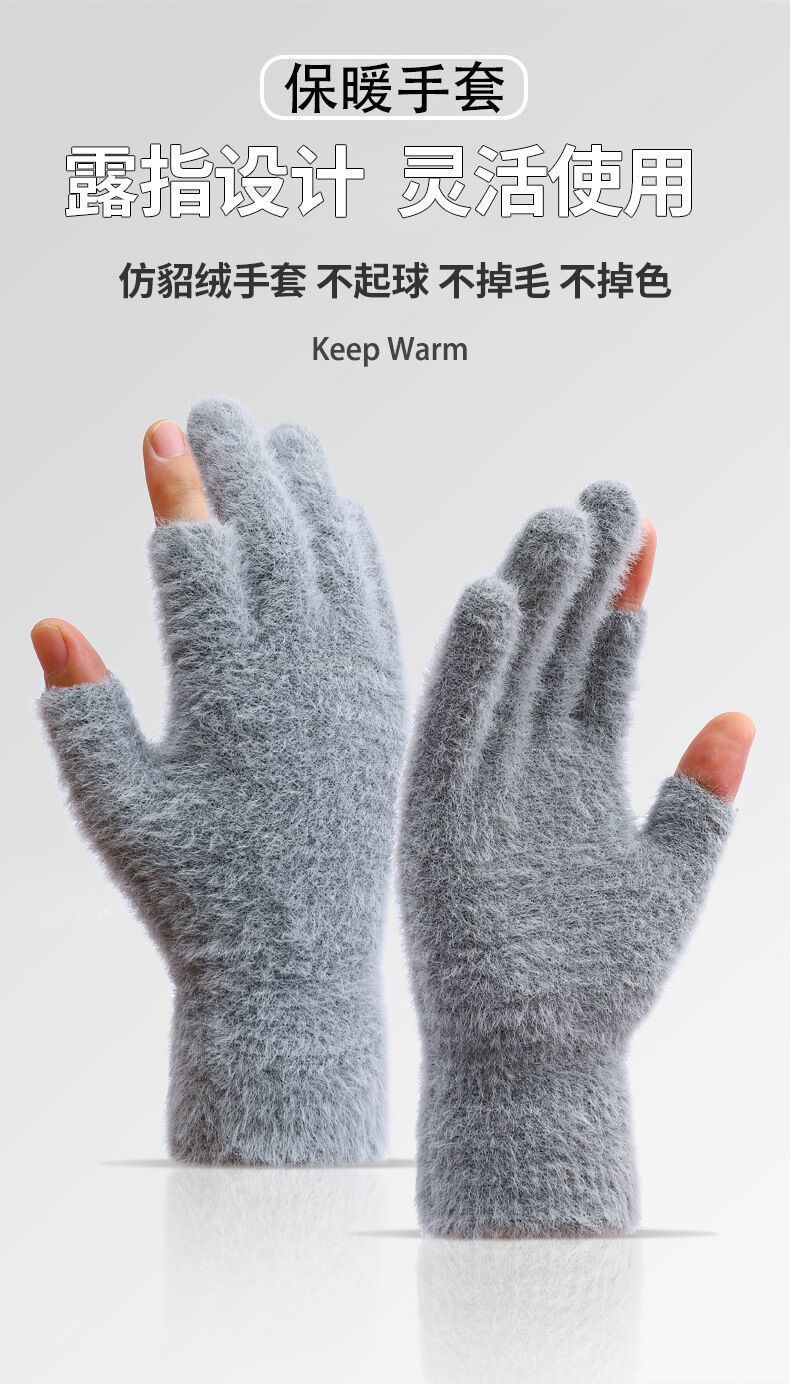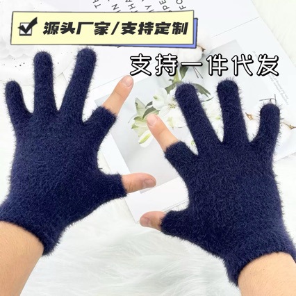 冬季保暖漏二指手套保暖时尚手机游戏触屏男女学生针织手套厂批发
