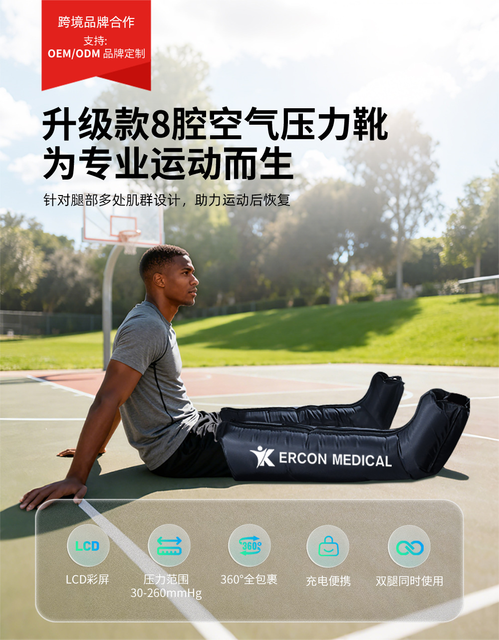 运动恢复8腔气囊腿部按摩器运动员全腿空气波腿套按摩仪跨境