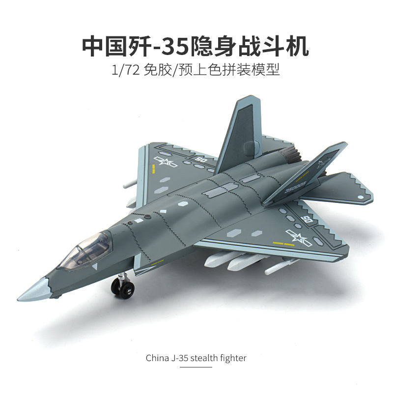 旭嘉1/72中国歼35隐型战斗机免胶预上色军事拼装模型积木玩具礼物