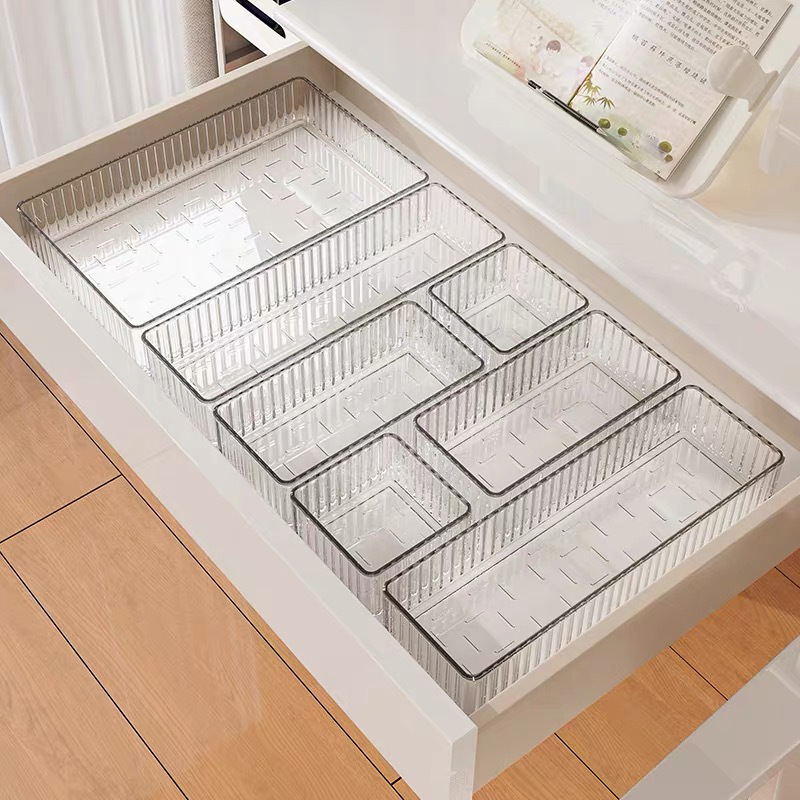 抽屉内置化妆品分格收纳盒整理盒梳妆台护肤品桌面杂物收纳盒透明