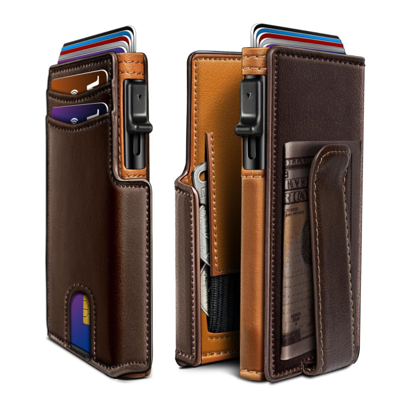 欧美超薄钱包真皮男士复古撞色短款男士钱包rfid防盗牛皮钱包