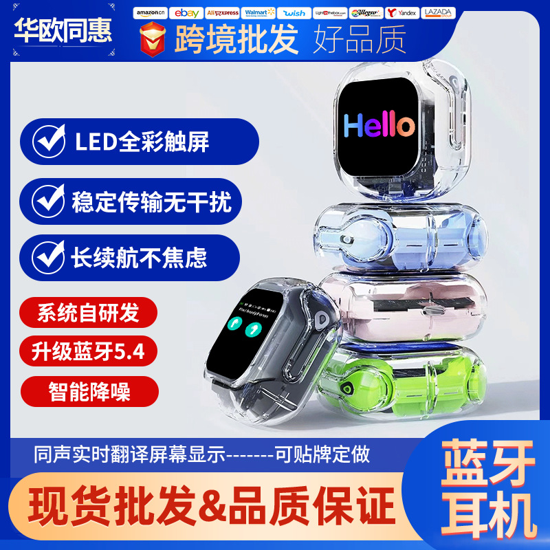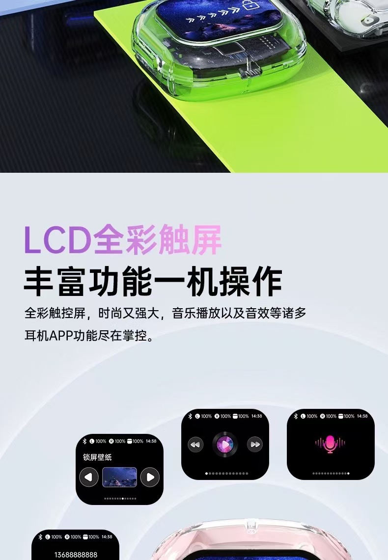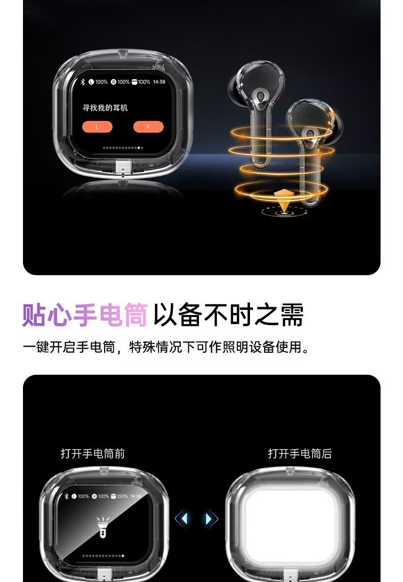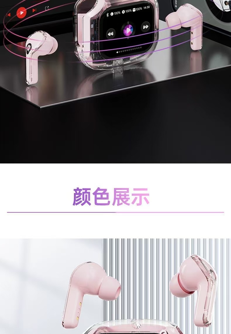 新款智能透明彩屏触屏蓝牙耳机无线入耳式降噪运动超长续航高音质
