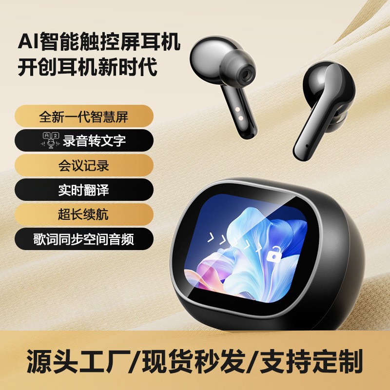 2025跨境新AIRMAX带屏实时显示AI翻译智能蓝牙耳机查找耳机消息