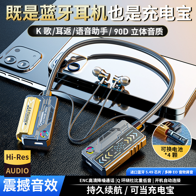 B15换电池蓝牙耳机超长续航运动挂脖式抖音带货跨境运动款立体声