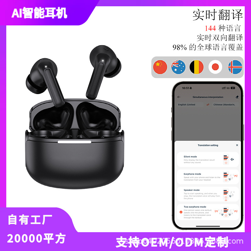 工場直販AI翻訳イヤホンHIFI高音質TWS携帯に便利会議翻訳Bluetoothヘッドセット