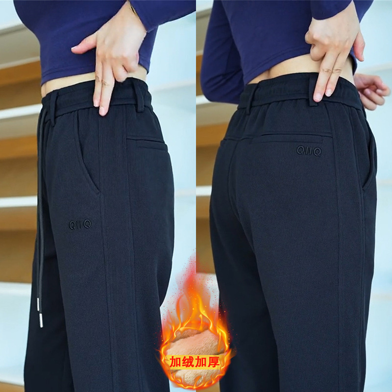 秋冬加绒休闲裤新款男士宽松直筒裤2025运动时尚帅气松紧腰长裤