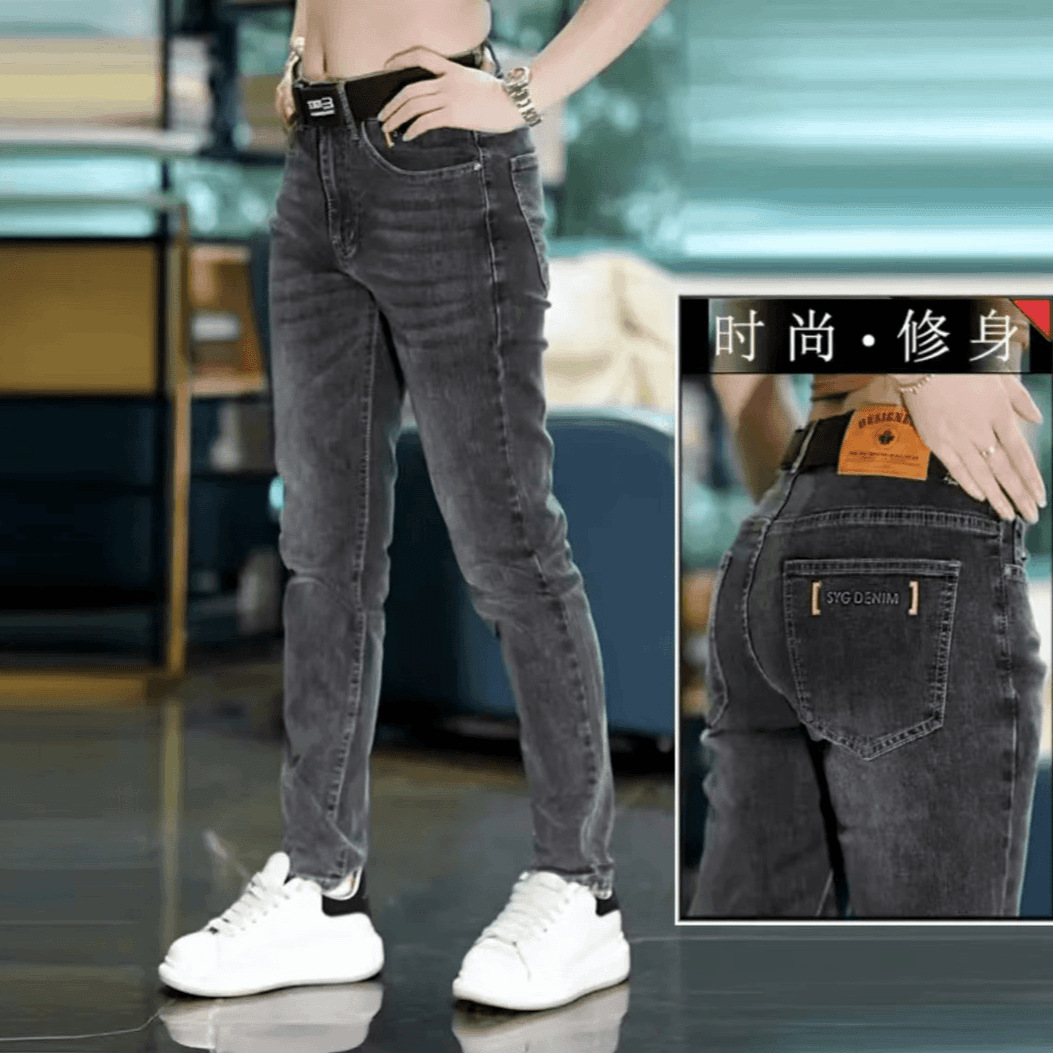 ジーパンの男性の夏の薄いタイプの韓国版の小さい足は身を修めるハイエンドの浅い青い青年のまっすぐな筒の弾力のカジュアルな長いズボンです。