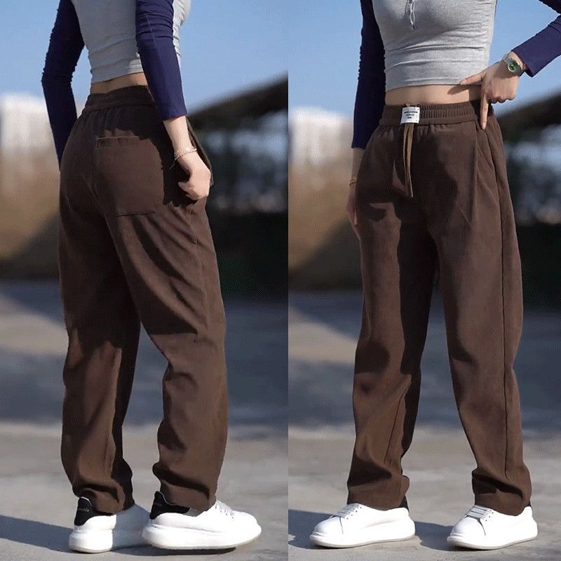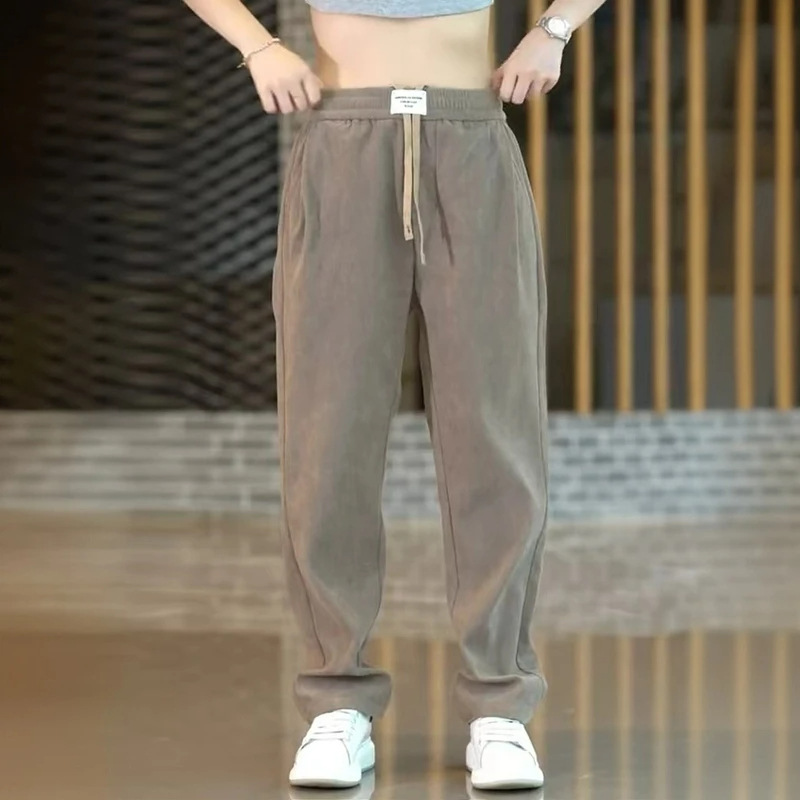 秋冬にベルベットを厚くしてゆったりしたカジュアルパンツが垂れ下がってしわに抵抗している男性は、快適で狭いカジュアルなストレートパンツを組み合わせている
