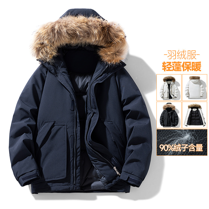 男士休闲工装连帽90绒羽绒服2025年冬季派克服大毛领保暖情侣外套