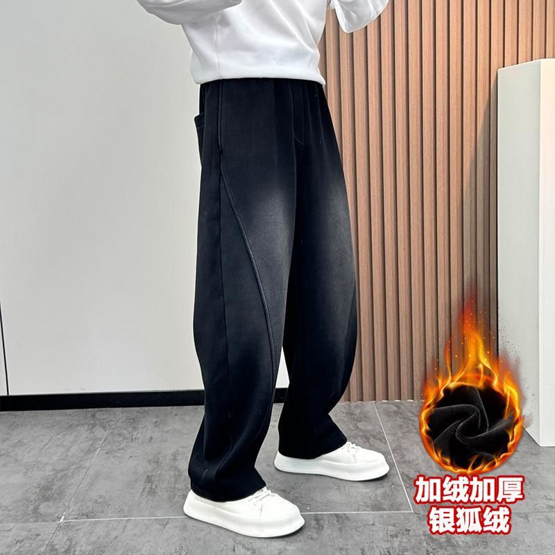 2024 秋と冬厚いワイドレッグパンツコーンビーンズボアベルベット新ファッショントレンドメンズパンツ厚く暖かいズボン