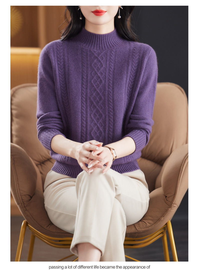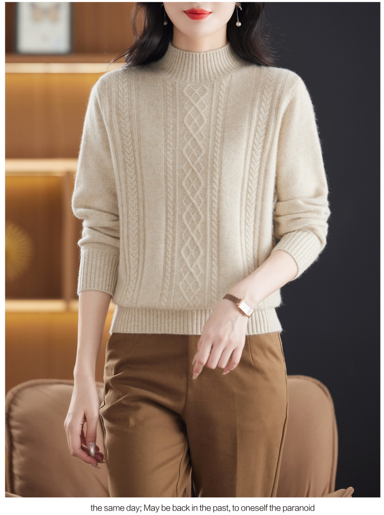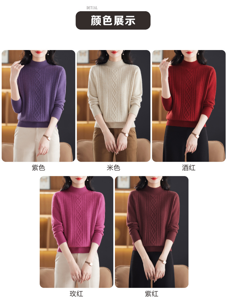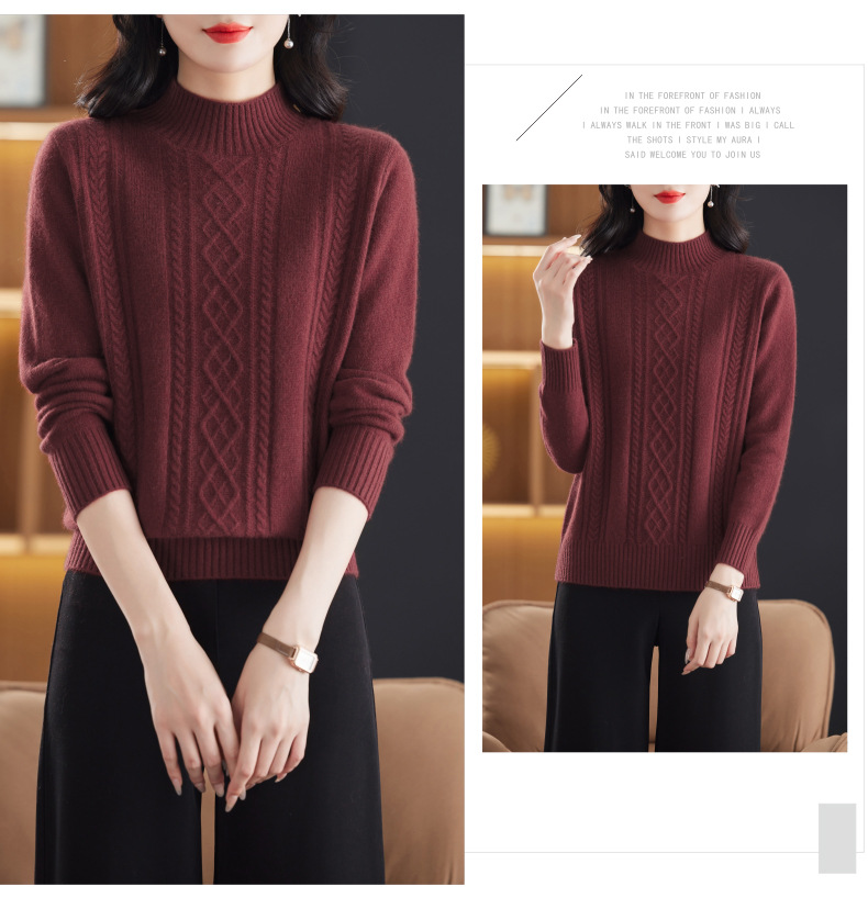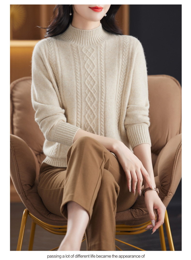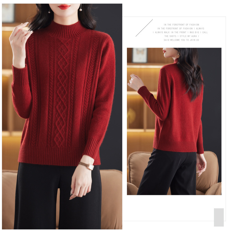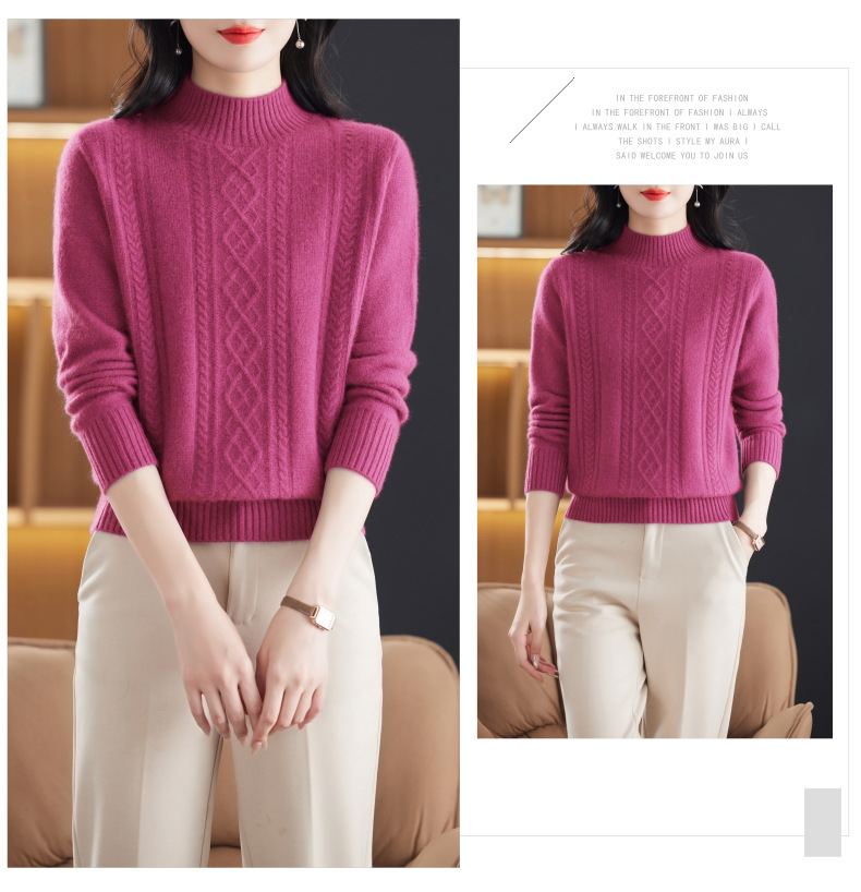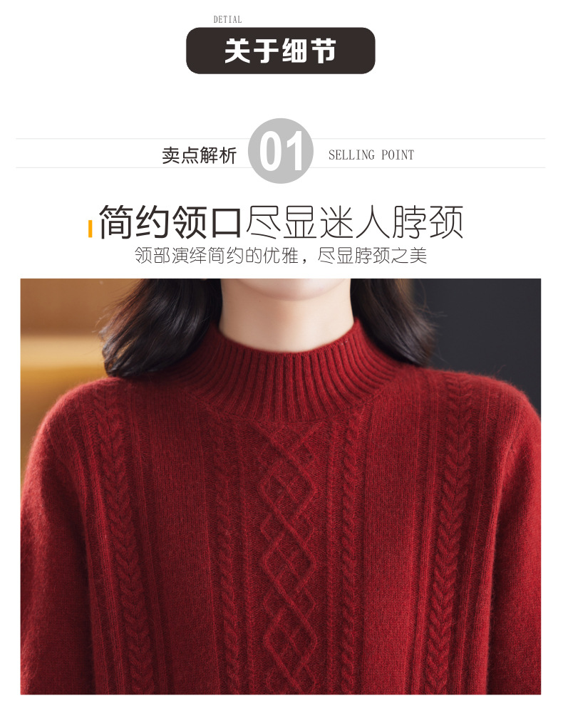 鄂尔多斯市羊毛衫女新款半高套头加厚保暖宽松打底针织衫羊绒毛衣