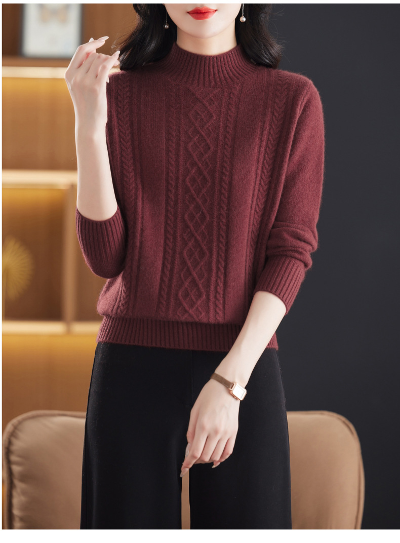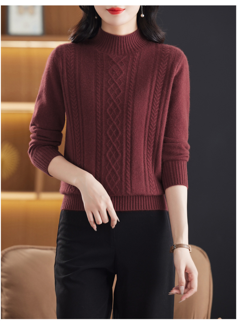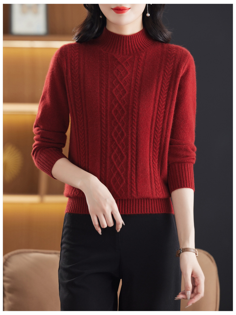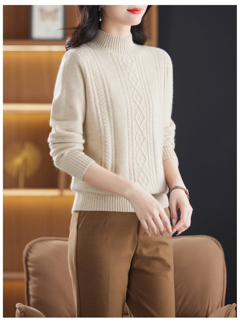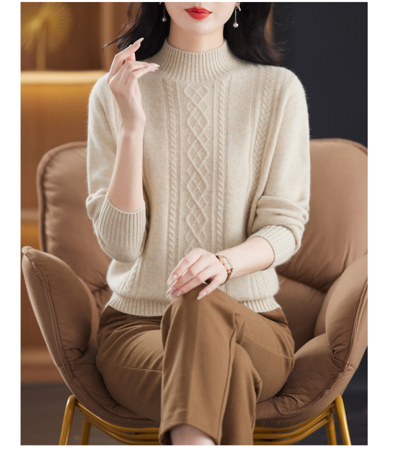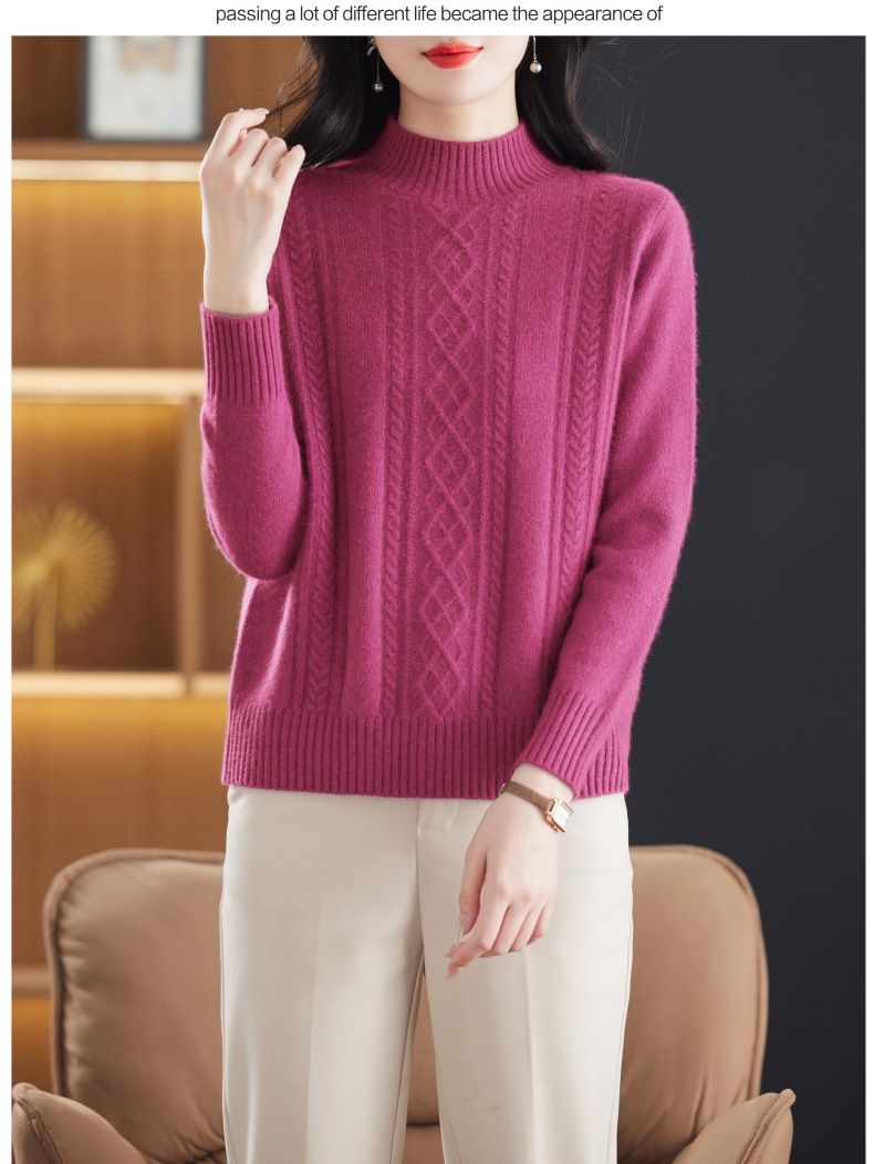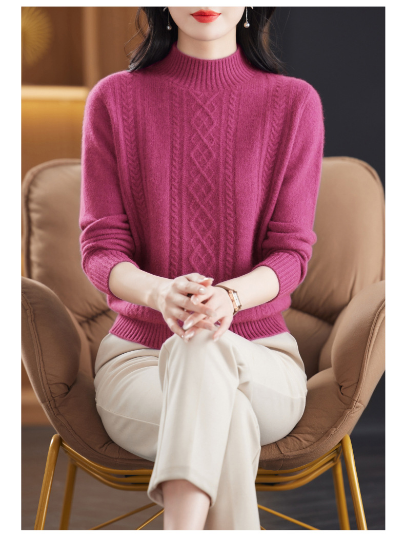 鄂尔多斯市羊毛衫女新款半高套头加厚保暖宽松打底针织衫羊绒毛衣